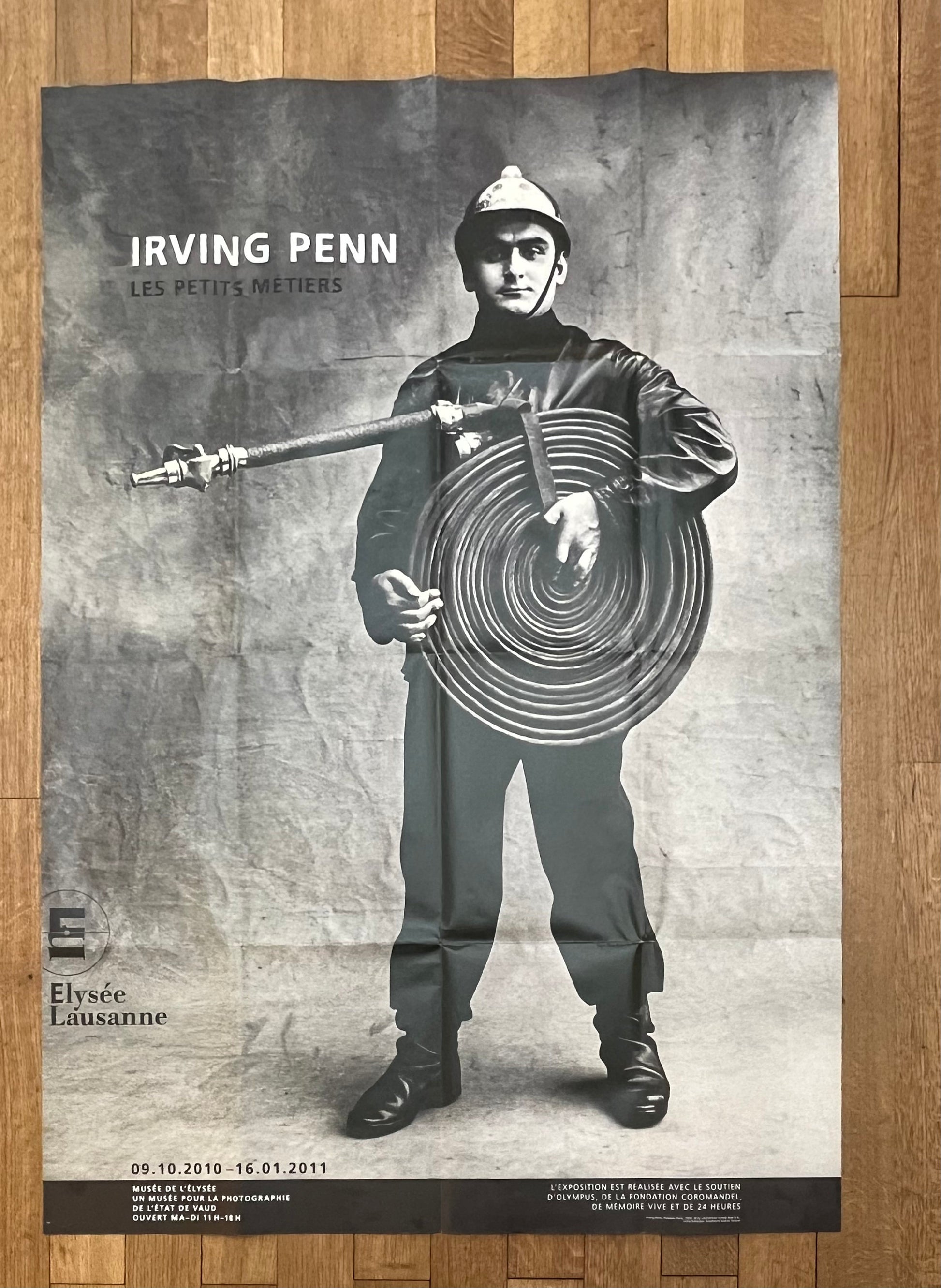 This poster features a photograph called Pompier by Irving Penn from 1950. The poster was released by the Musée de l'élysée un musée pour la photographie de l'état du Vaud for the exhibition "Irving Penn les petits métiers".