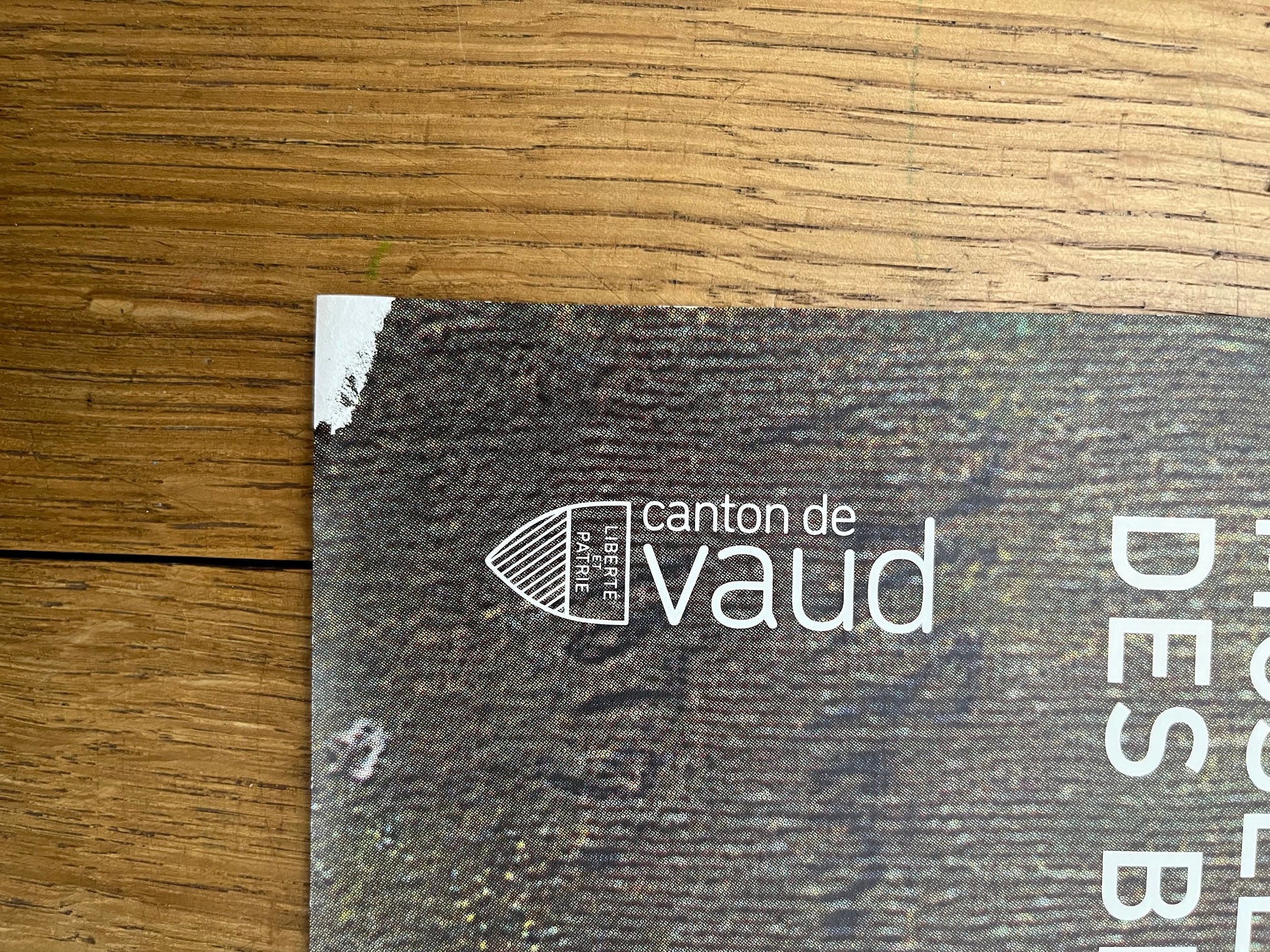 The print is in good condition with 3 folds from the left to the right side and 3 from the top to the bottom, some signs of handling, and 4 pinholes at each corner. It was printed on glossy paper.