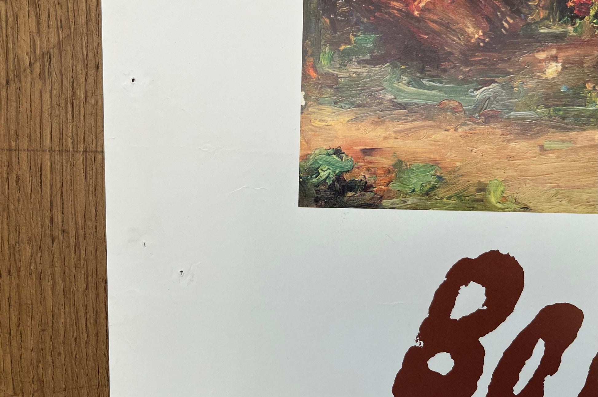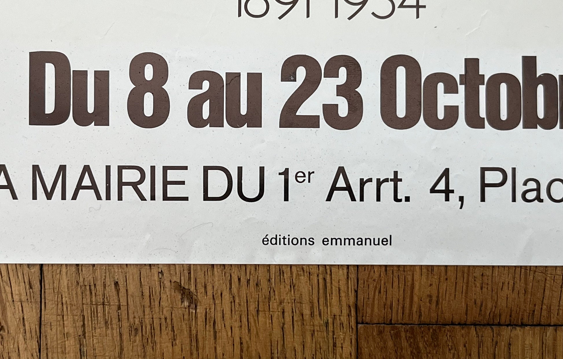 Beautiful art poster by Jacob Balgley advertising an exhibition in Paris. It is in good condition with signs of handling along the borders, several pinholes and a teat at the top border.