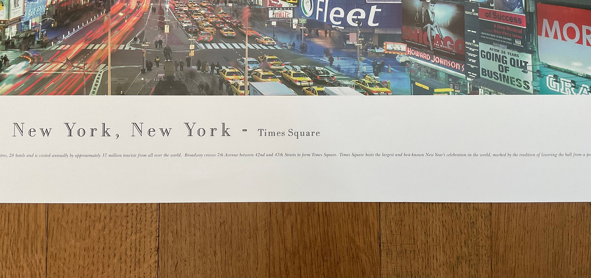 This is a beautiful photography poster by James Blakeway featuring a panorama of the New York Times Square in 2002.