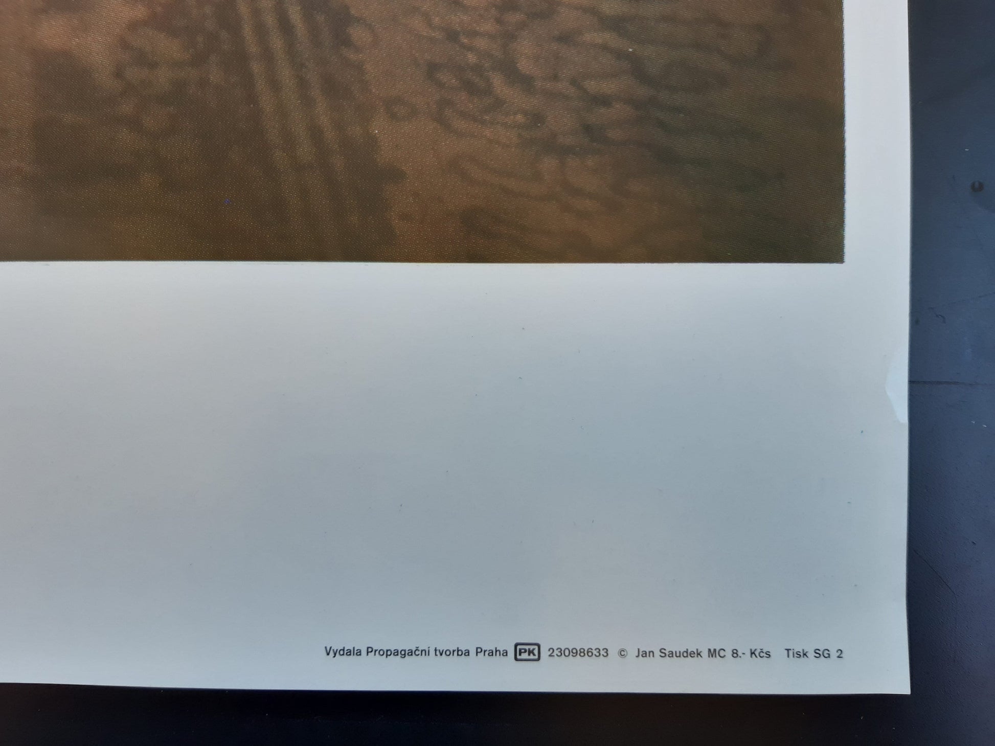 Original art print with a photo of Jan Saudek (*1935), a Czech photographer. The poster is in used condition with some signs of handling. The colors are bright and vivid. The exact printing date is not known to me.
