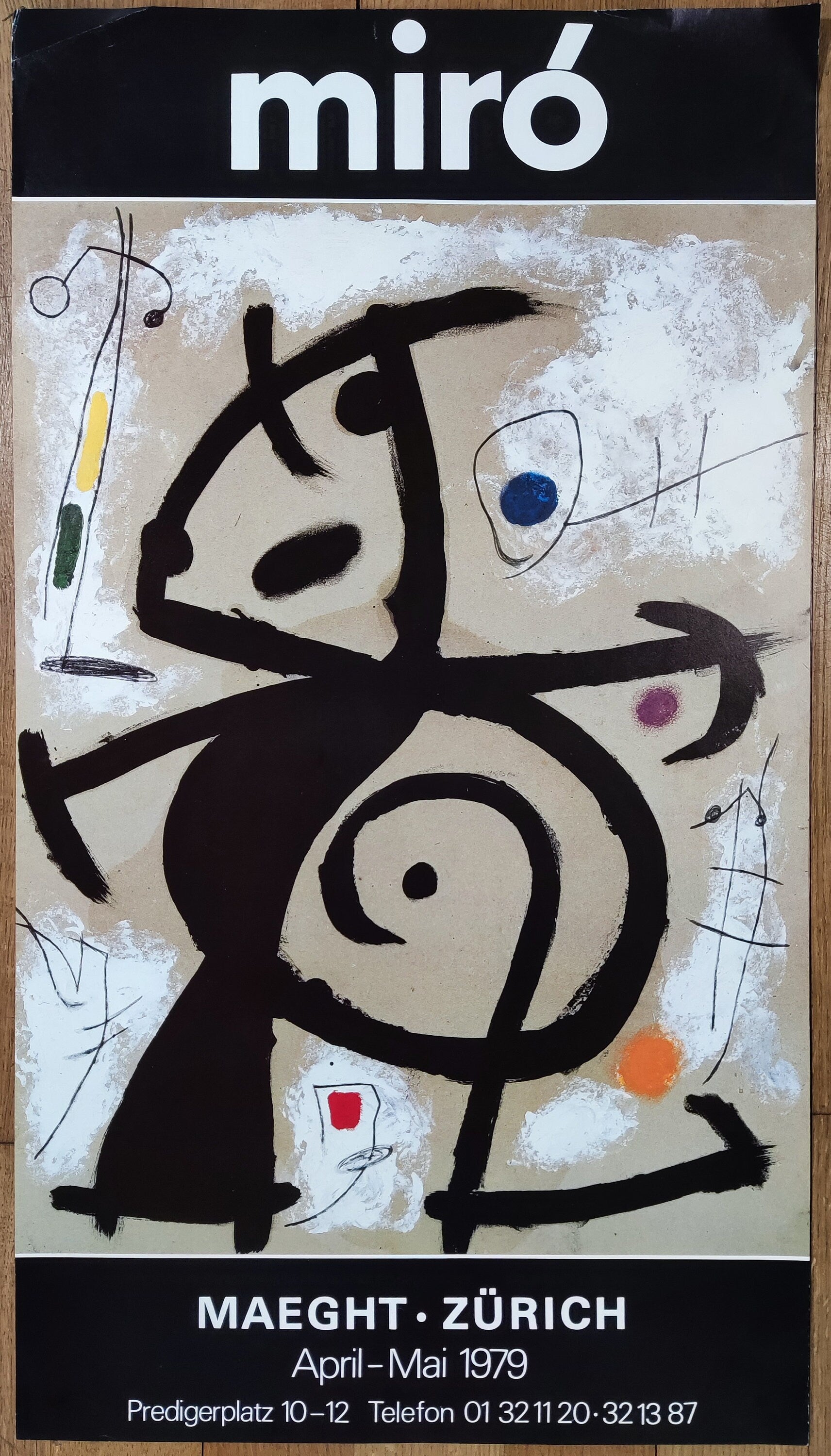 Beautiful art poster by spanish Joan Miró advertising an exhibition at the Gallerie Maeght in Zurich in 1979.