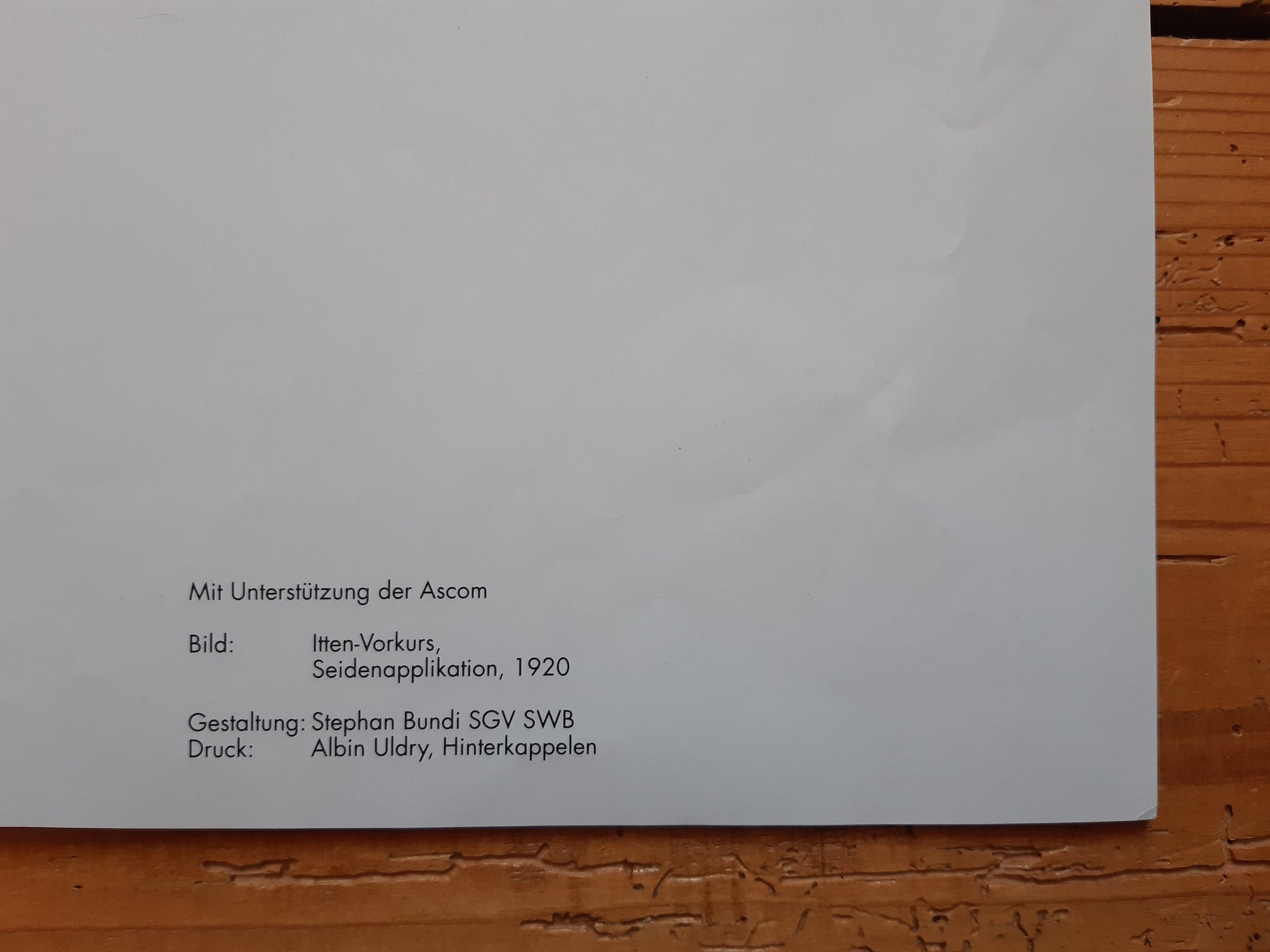 This large poster has been designed to advertise an exhibition in 1995 at the Kunstmuseum Bern, Switzerland.