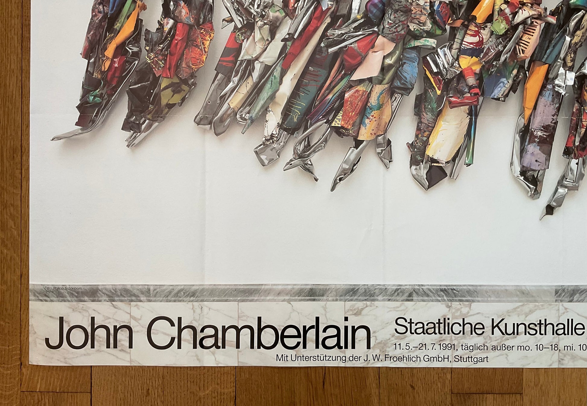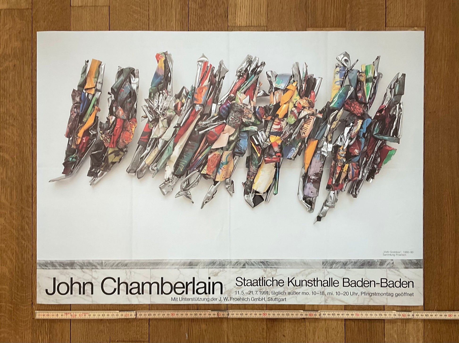 This is a beautiful art poster featuring a work by John Chamberlain and advertising an exhibition at the "Staatliche Kunsthalle Baden-Baden", Germany in 1991.