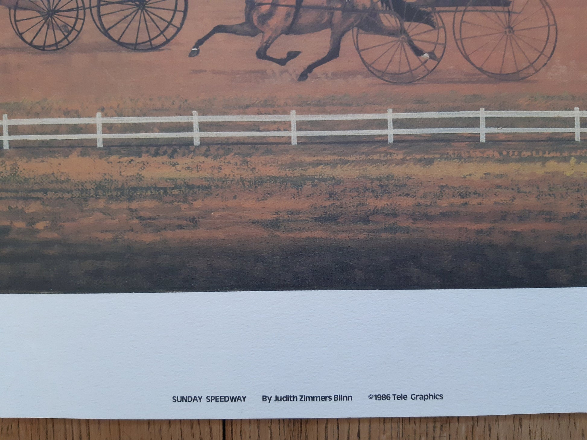 This is an original art poster featuring a painting by J. Zimmers Blinn, an american painter. It has been printed in 1986 onto wove paper. The colors are brilliant, there is a damage to the left lower corner, some other mild wear to the borders. The poster is hand signed and numbered
