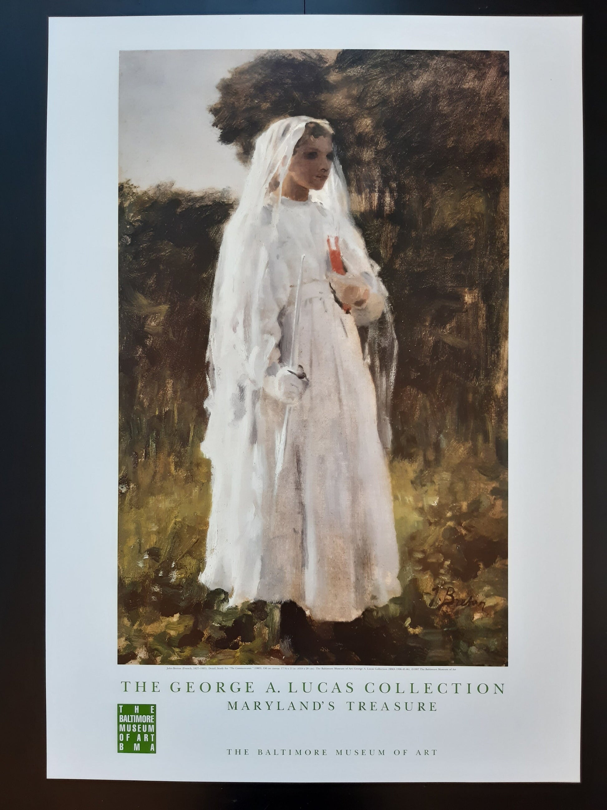 This is an art print with the artwork "The Communicants" by Jules Brenton to advertise the George Lucas Collection exhibited in the Baltimore Museum of Art.