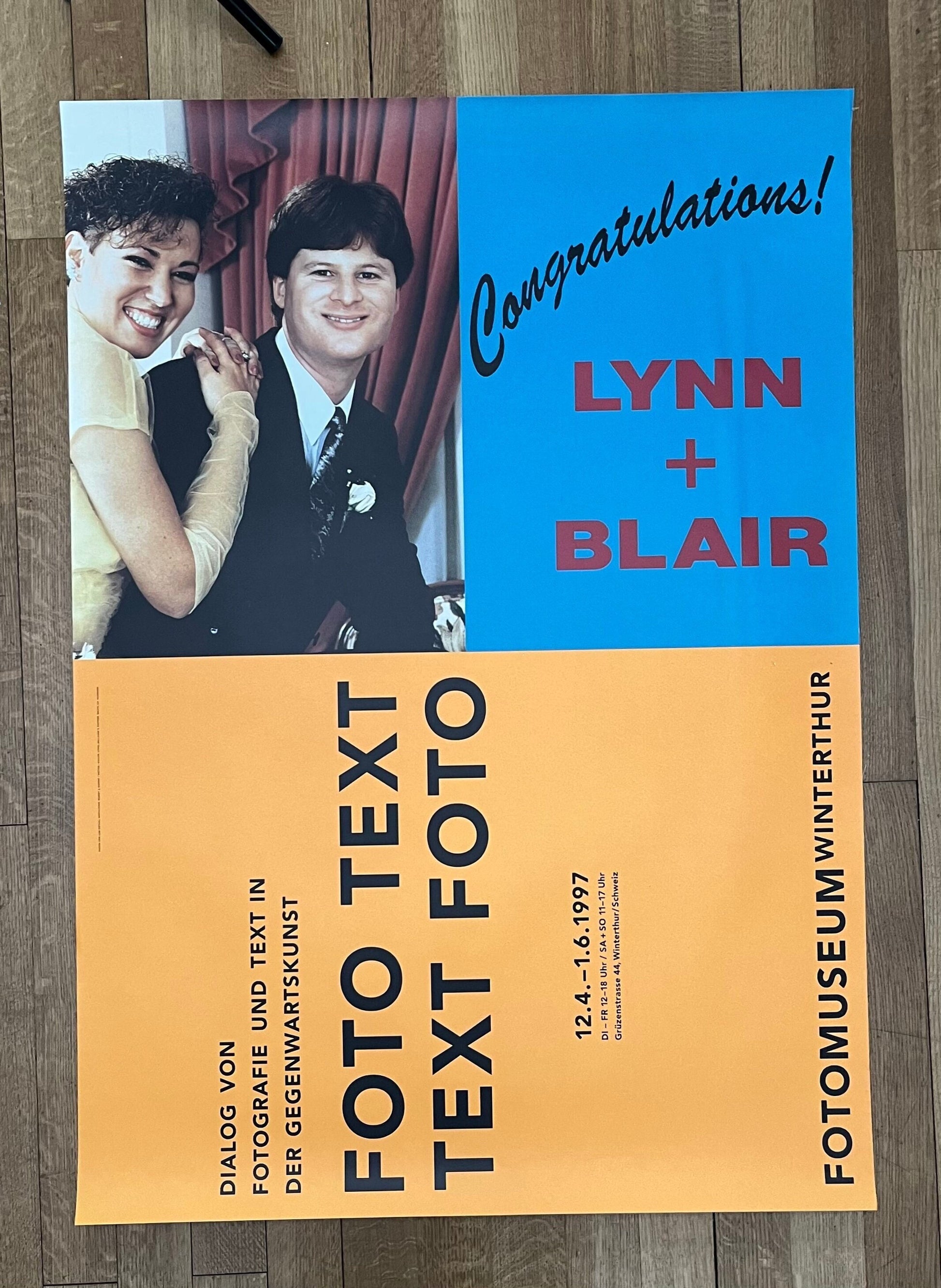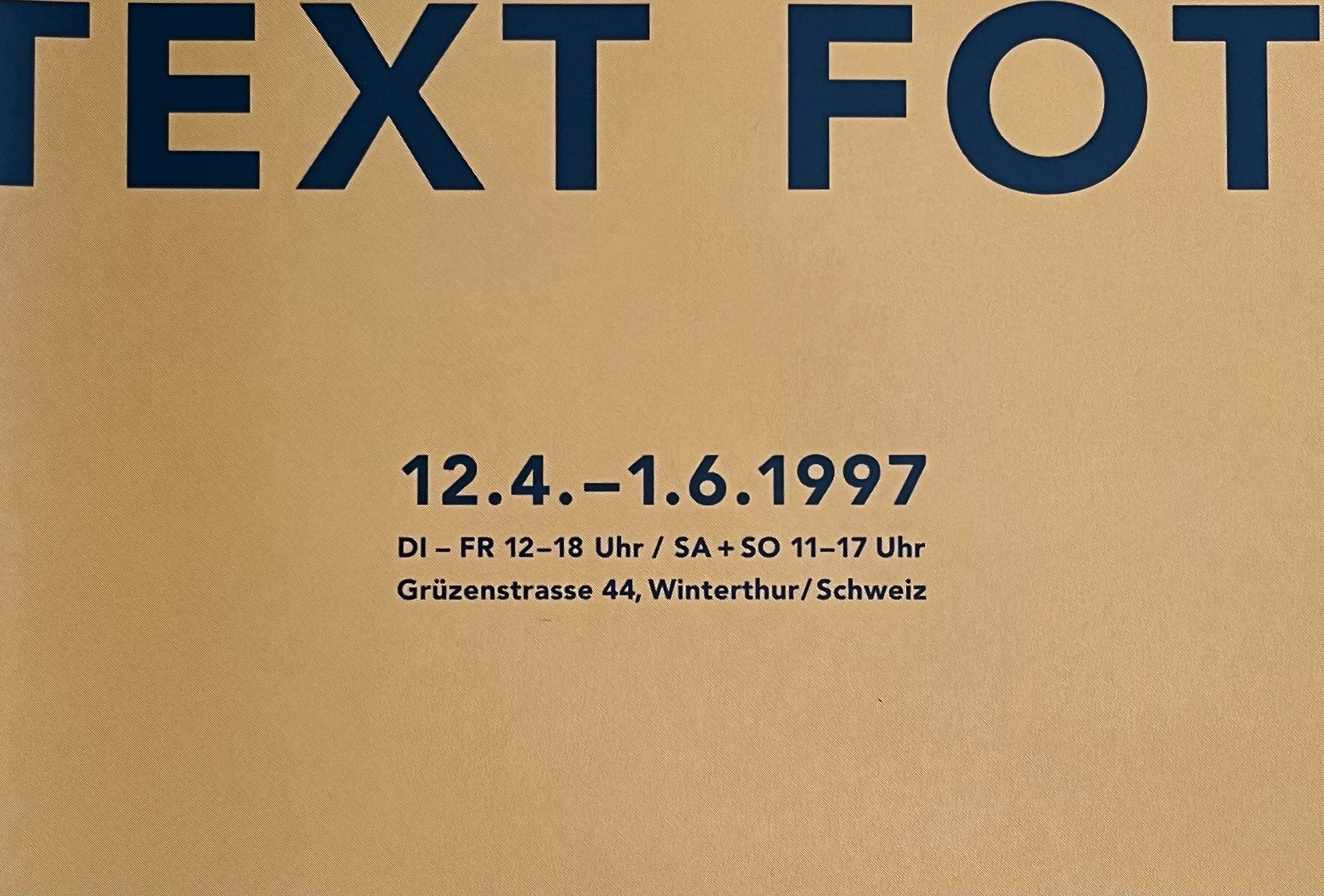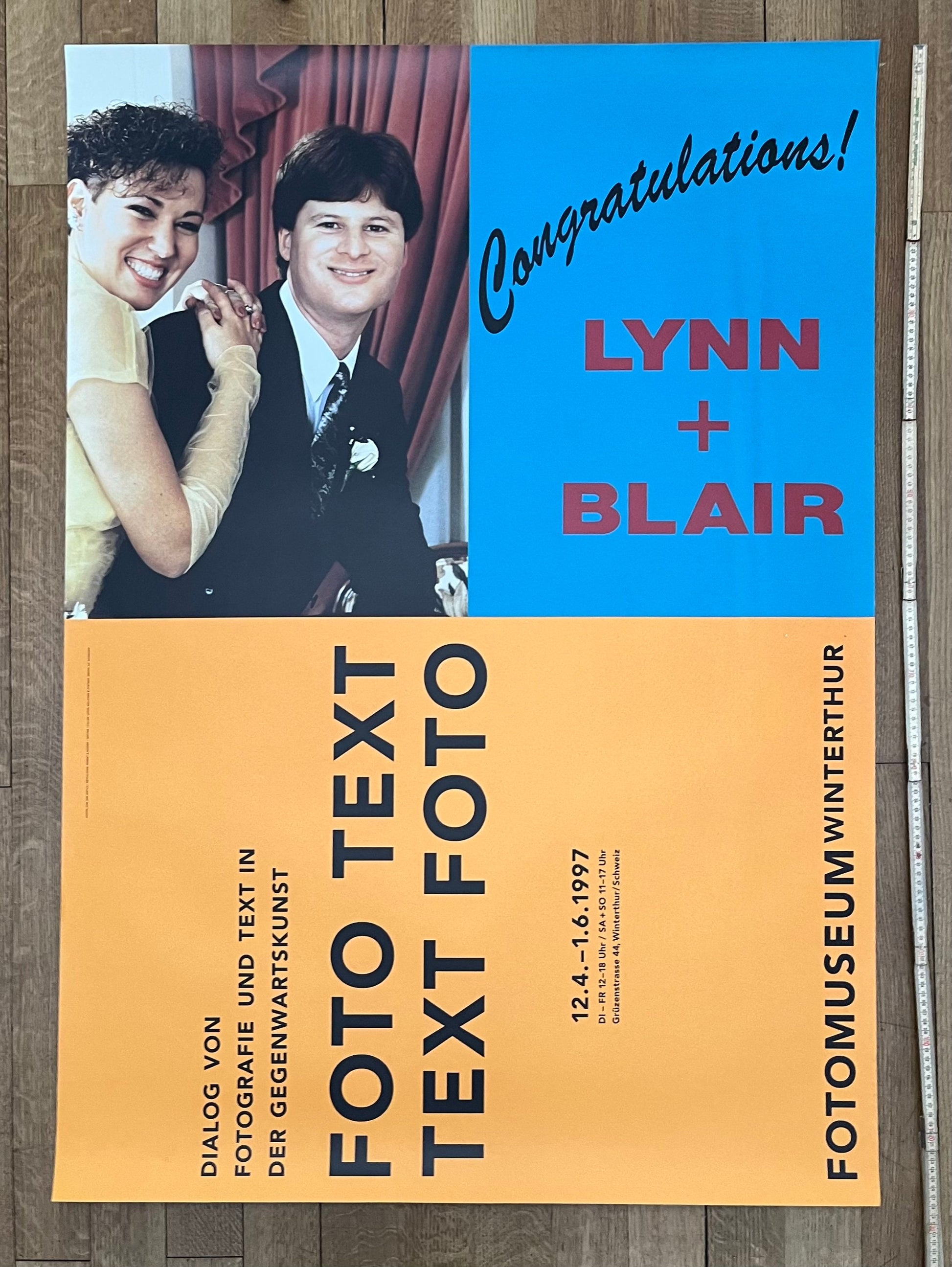 This is an original art poster advertising the Fotomuseum Winterthur. The exhibition "FOTO TEXT FOTO TEXT - DIALOG VON FOTOGRAFIE UND TEXT IN DER GEGENWARTSKUNST" features the work of Ken Lum who is the artist of the image on the poster.