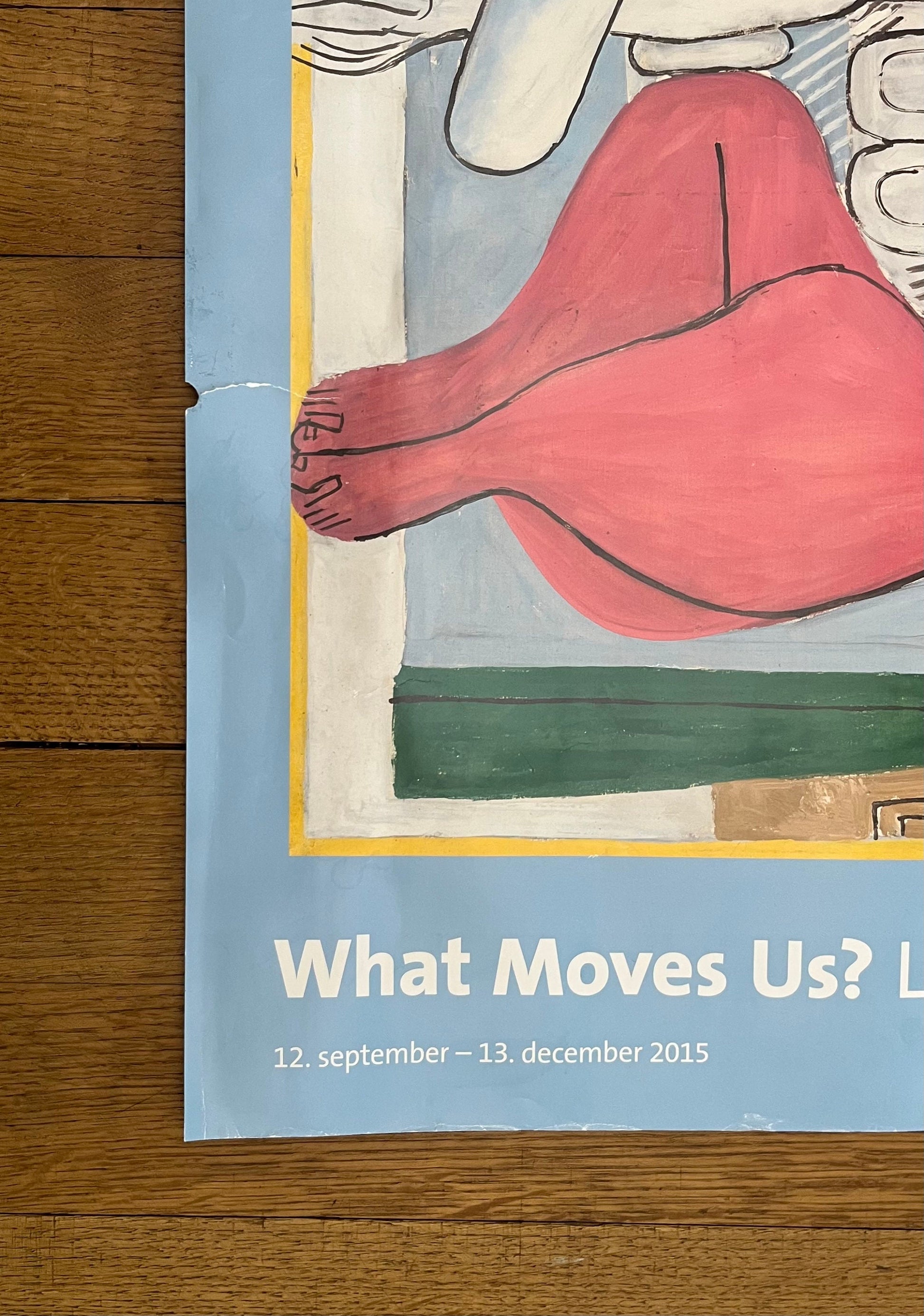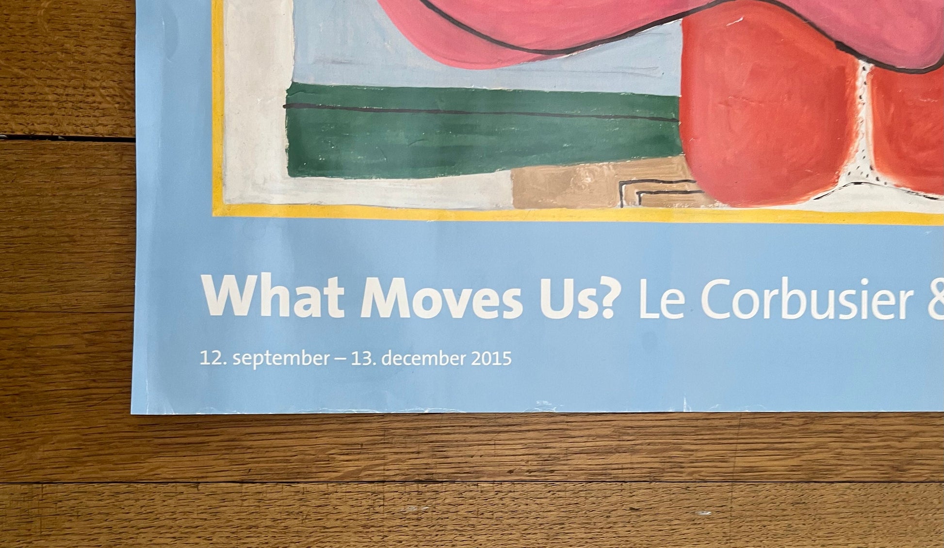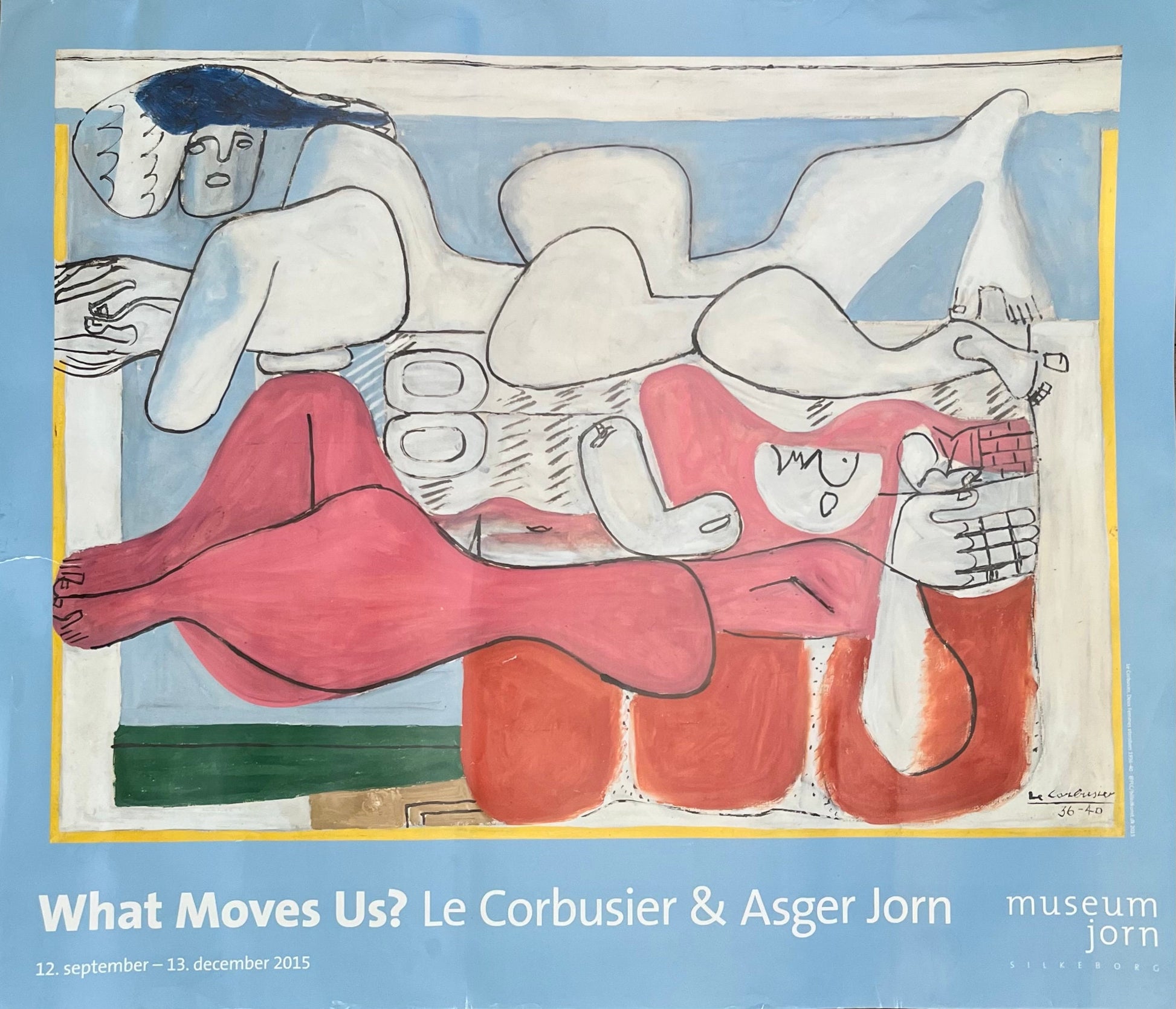 This is a beautiful art poster by Le Corbusier advertising an exhibition at the museum Jorn in Denmark in 2015. The poster is in used condition with water stains (rolling marks), signs of handling along the borders and 1 tear.