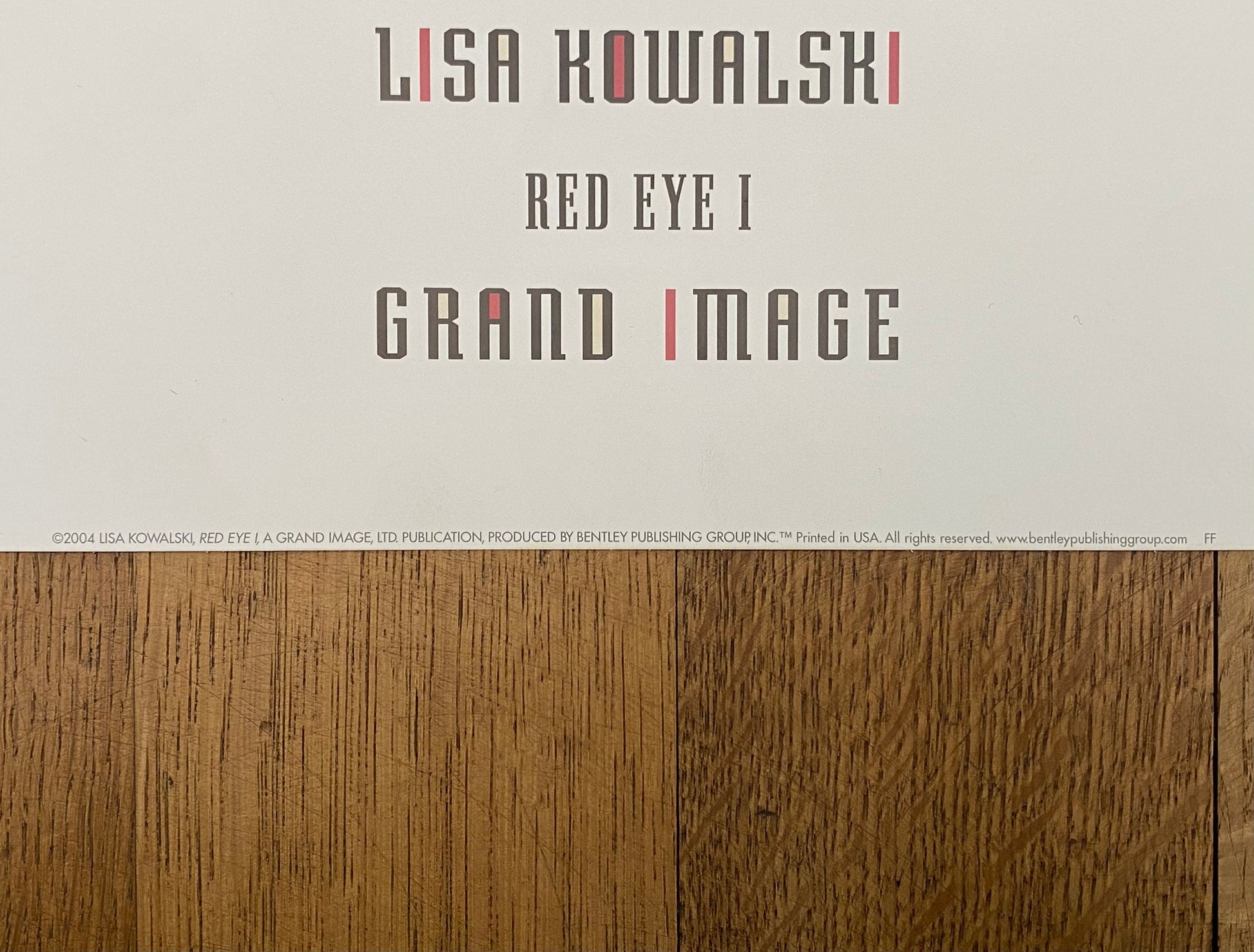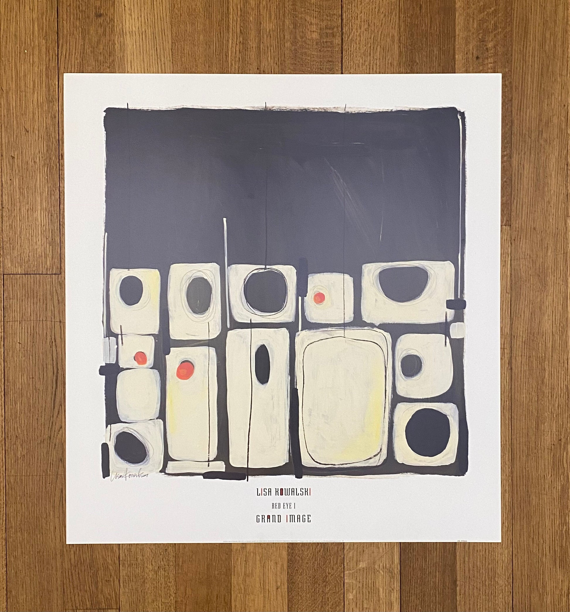 This is a beautiful art poster featuring Lisa Kowalski's work "Red Eye I", which is an artwork with a black square and white/yellow circular shapes.