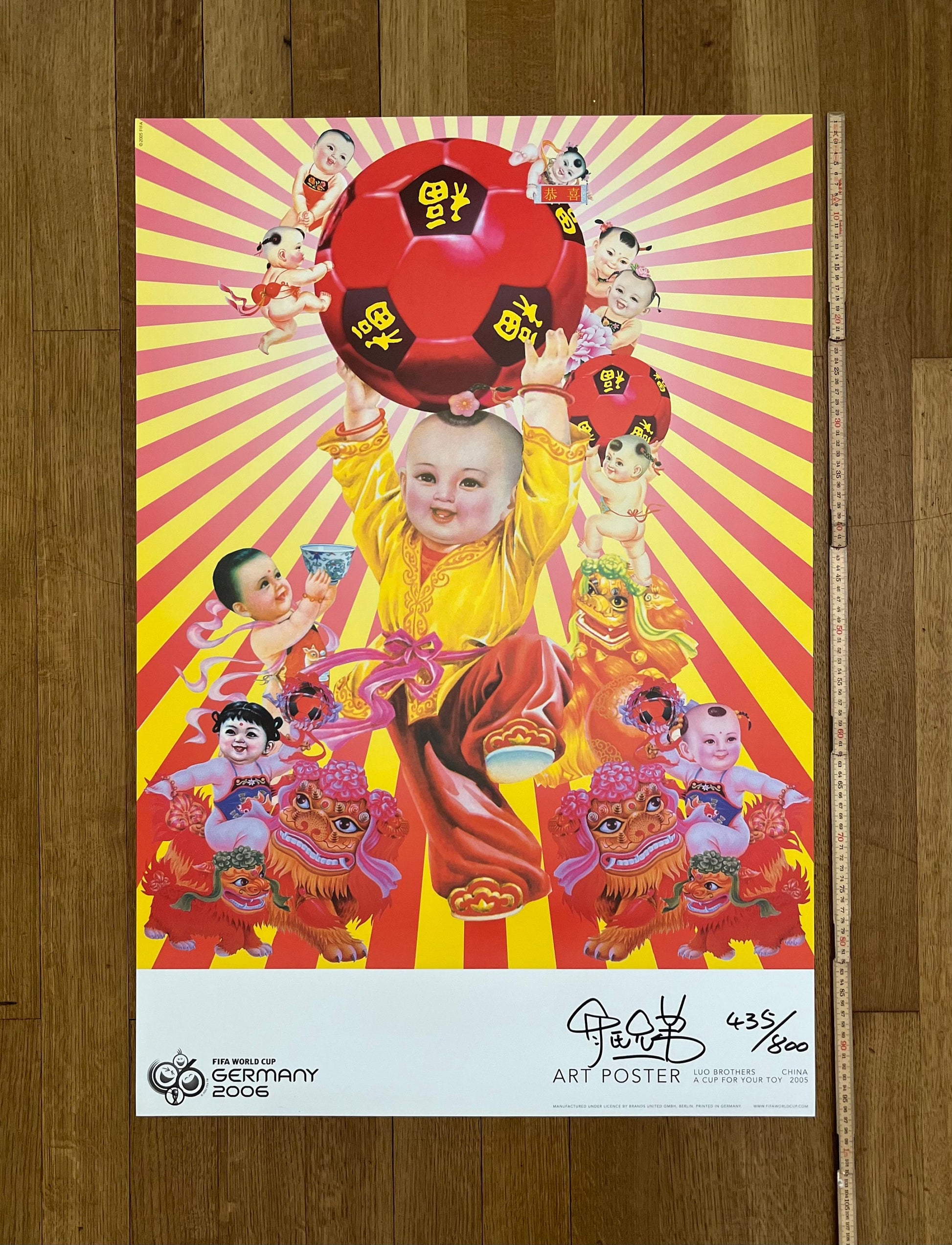This is an original art poster by the Luo Brothers that was published to advertise the Fifa World Cup in Germany in 2006. The image on the poster is called A Cup for Your Toy which was made in 2005. It is hand signed / numbered by the artists