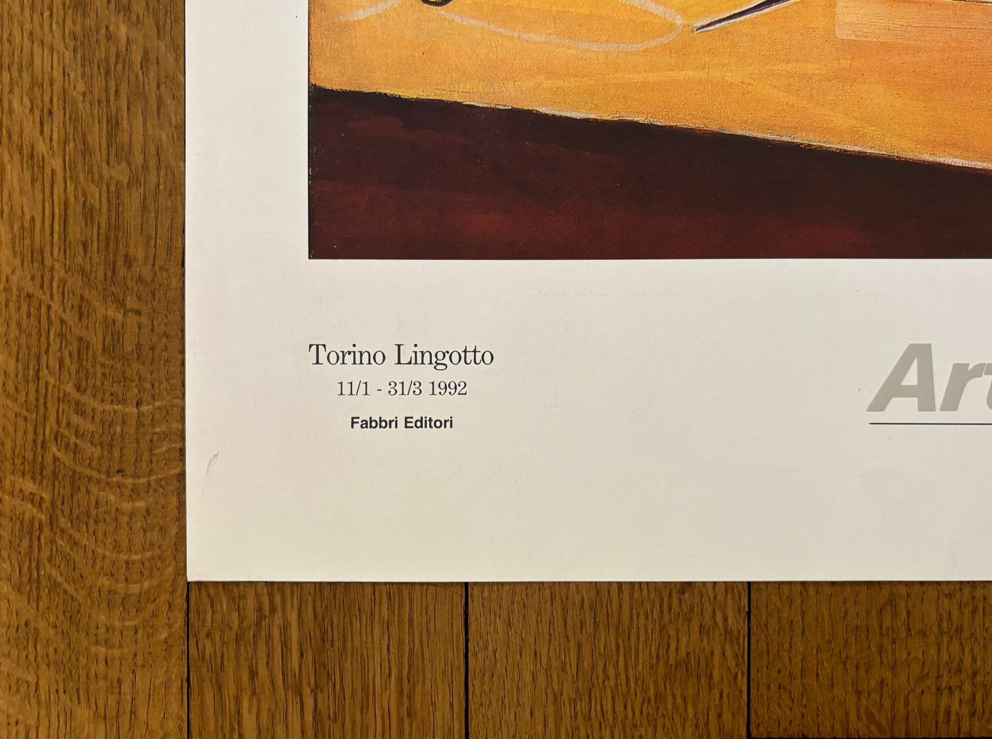 This is a beautiful art poster by Man Ray featuring his artwork "l'homme infini" and advertising an exhibition in Turin in 1992.