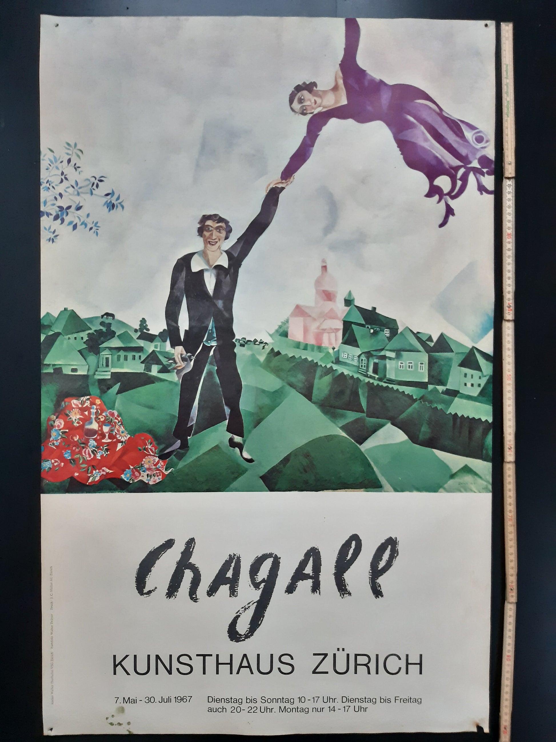 This is an original art poster by Marc Chagall. The poster has been made for an exhibition at the Kunsthaus in Zurich in 1967, Switzerland.