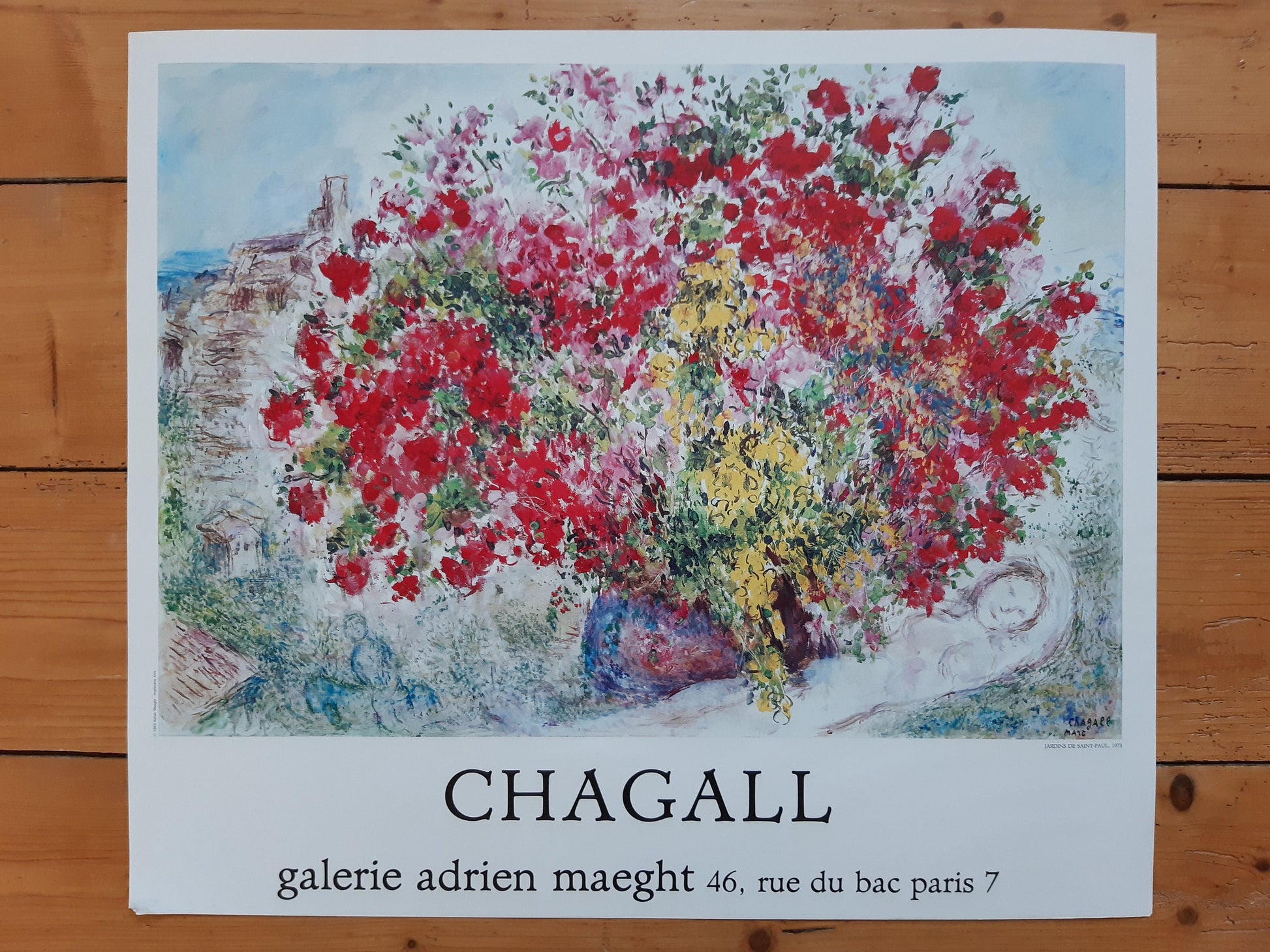 This is an originalart poster by Marc Chagall. The poster has been made for an exhibition at Galerie Maeght in paris, France, in 1987.