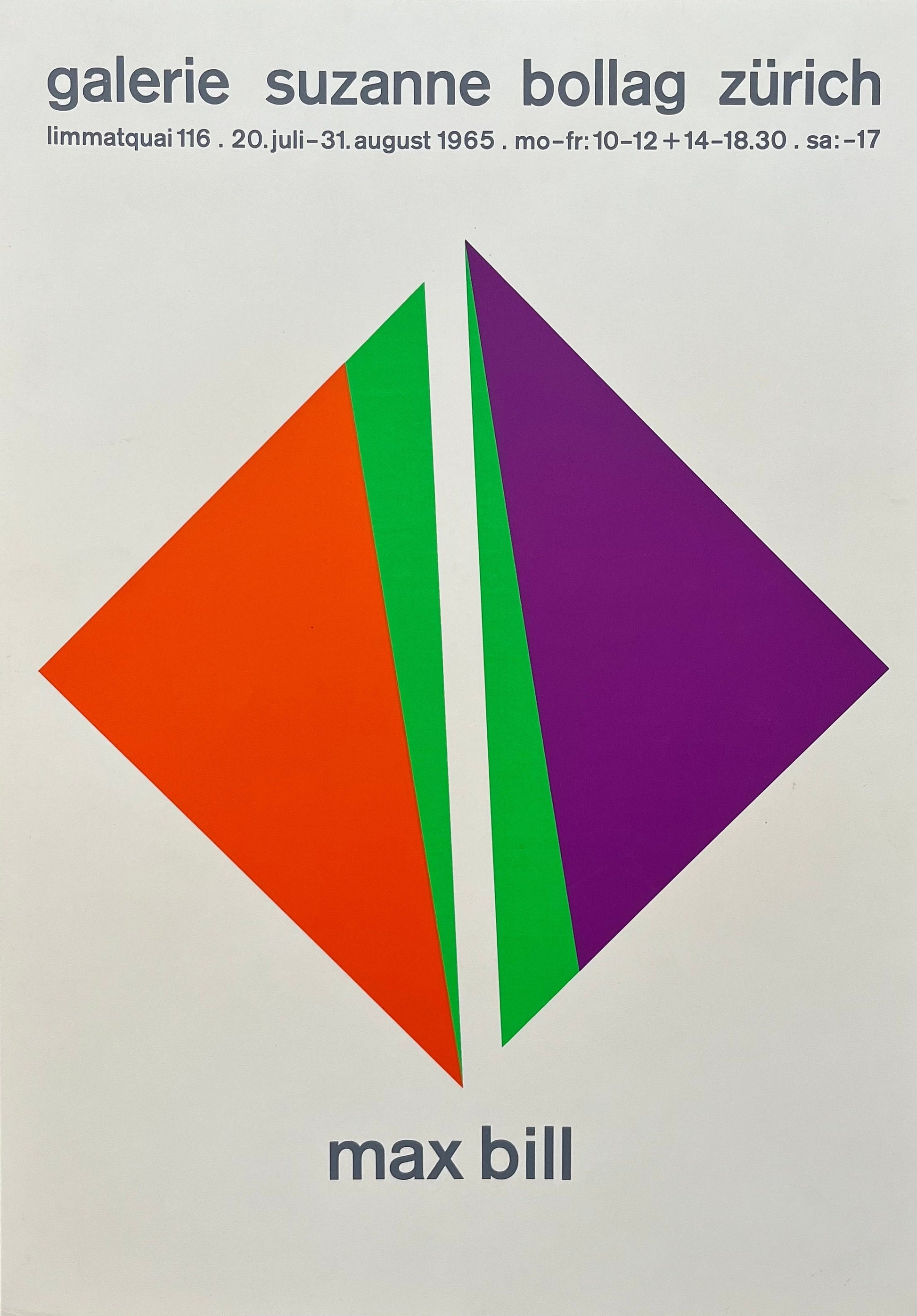 This is an original art poster by Max Bill. Galerie Suzanne Bollag released the poster in Zurich in 1965.