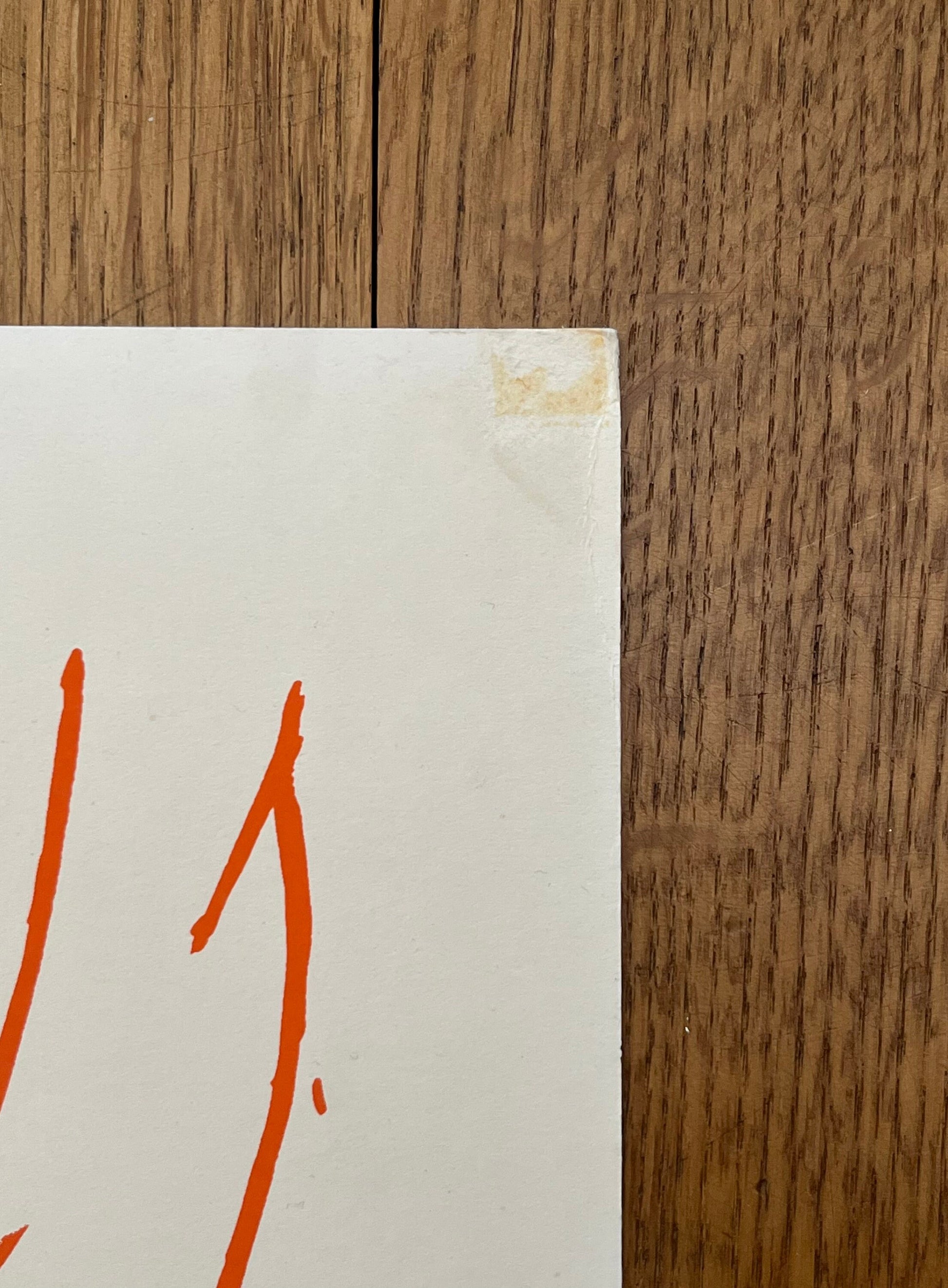 The poster is in good condition with tape stains and missing layers of paper at each corner and general light signs of handling. It is printed onto thick, uncoated paper.
