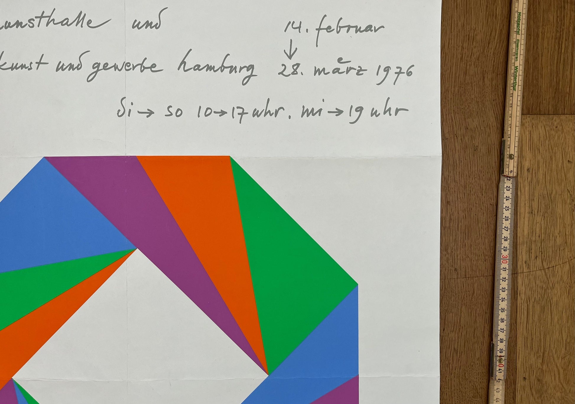 This is a beautiful silkscreen poster by Max Bill advertising an exhibition at the Hamburger Kunsthalle in 1976 in Hamburg, Germany. Max Bill was a Swiss artist and architect (* 22. Dezember 1908 in Winterthur; † 9. Dezember 1994 in Berlin)