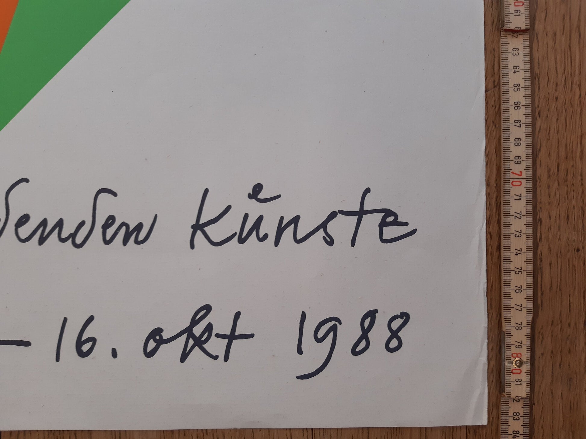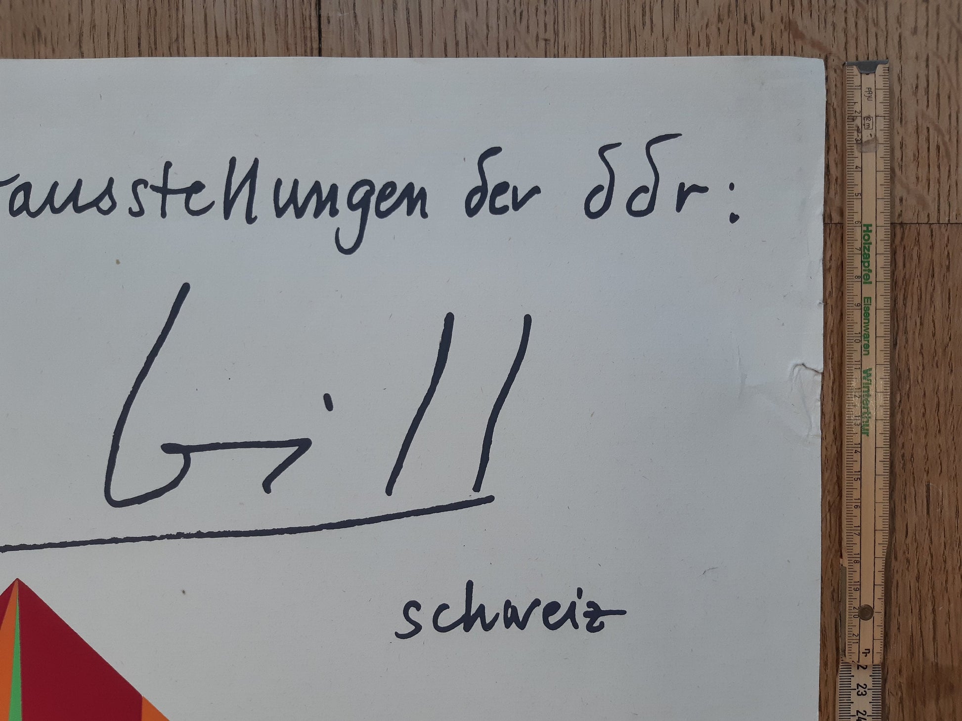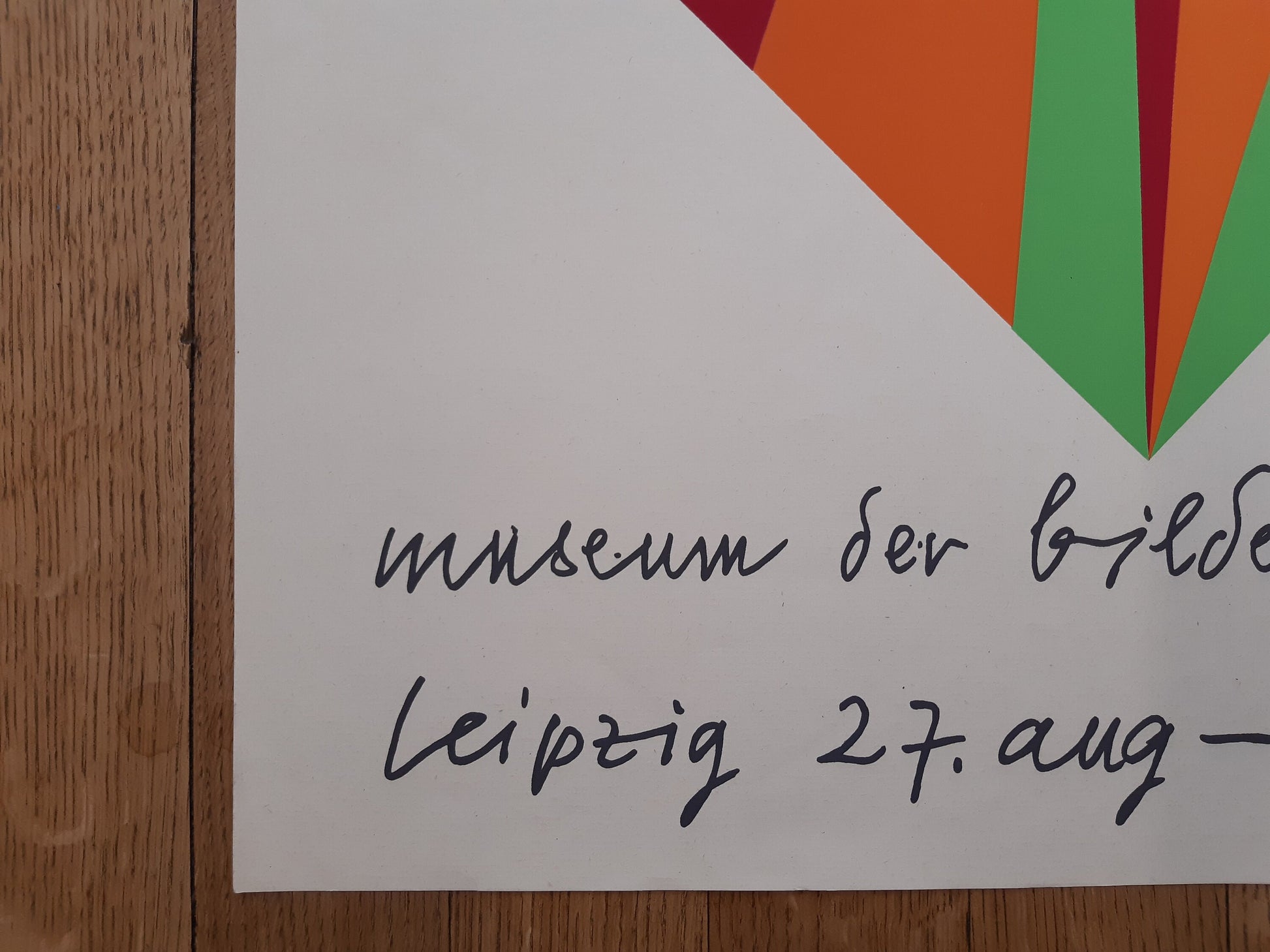 This is a beautiful original art poster made for the Museum der Bildenden Künste in Leipzig in the former DDR in 1989. The artwork is silkscreen/serigraph with afterwards added text in offset litho technique. Max Bill was a Swiss artist and architect (* 22. Dezember 1908 in Winterthur; † 9. Dezember 1994 in Berlin)
