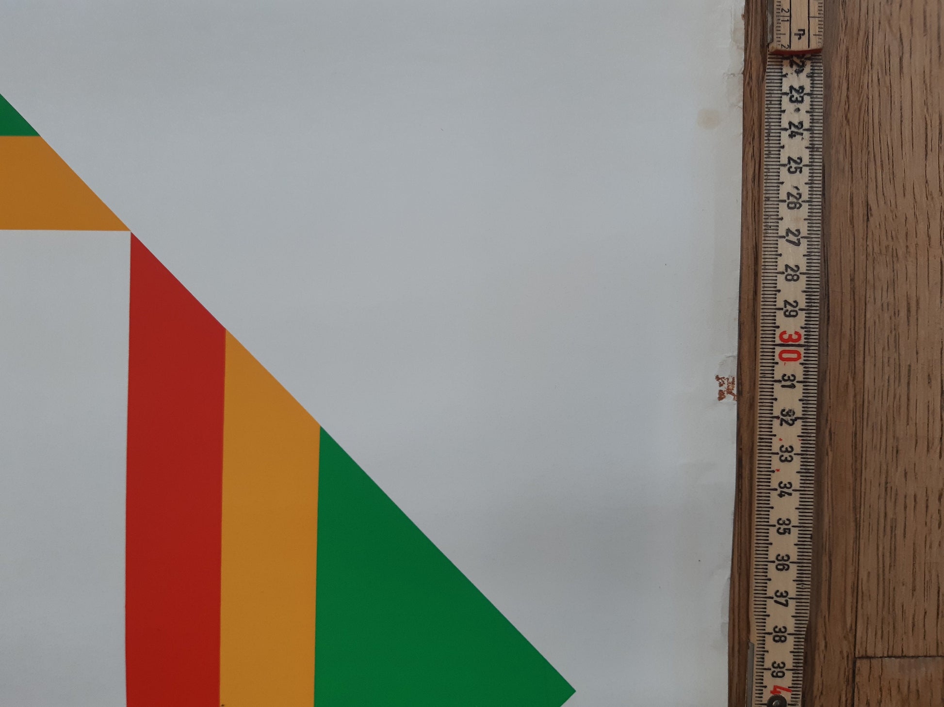 This is a beautiful original art poster made for the Galerie Reckermann in Cologne, germany in 1971. The artwork is silkscreen/serigraph with afterwards added text in offset litho technique. Max Bill was a Swiss artist and architect (* 22. Dezember 1908 in Winterthur; † 9. Dezember 1994 in Berlin)