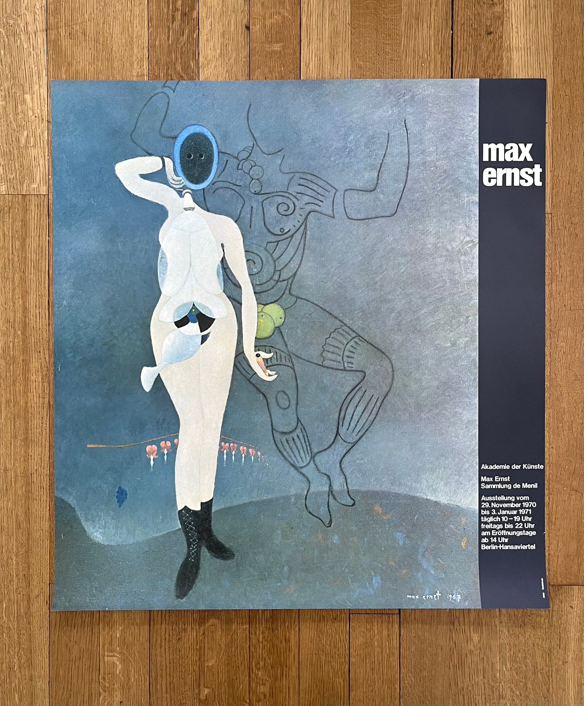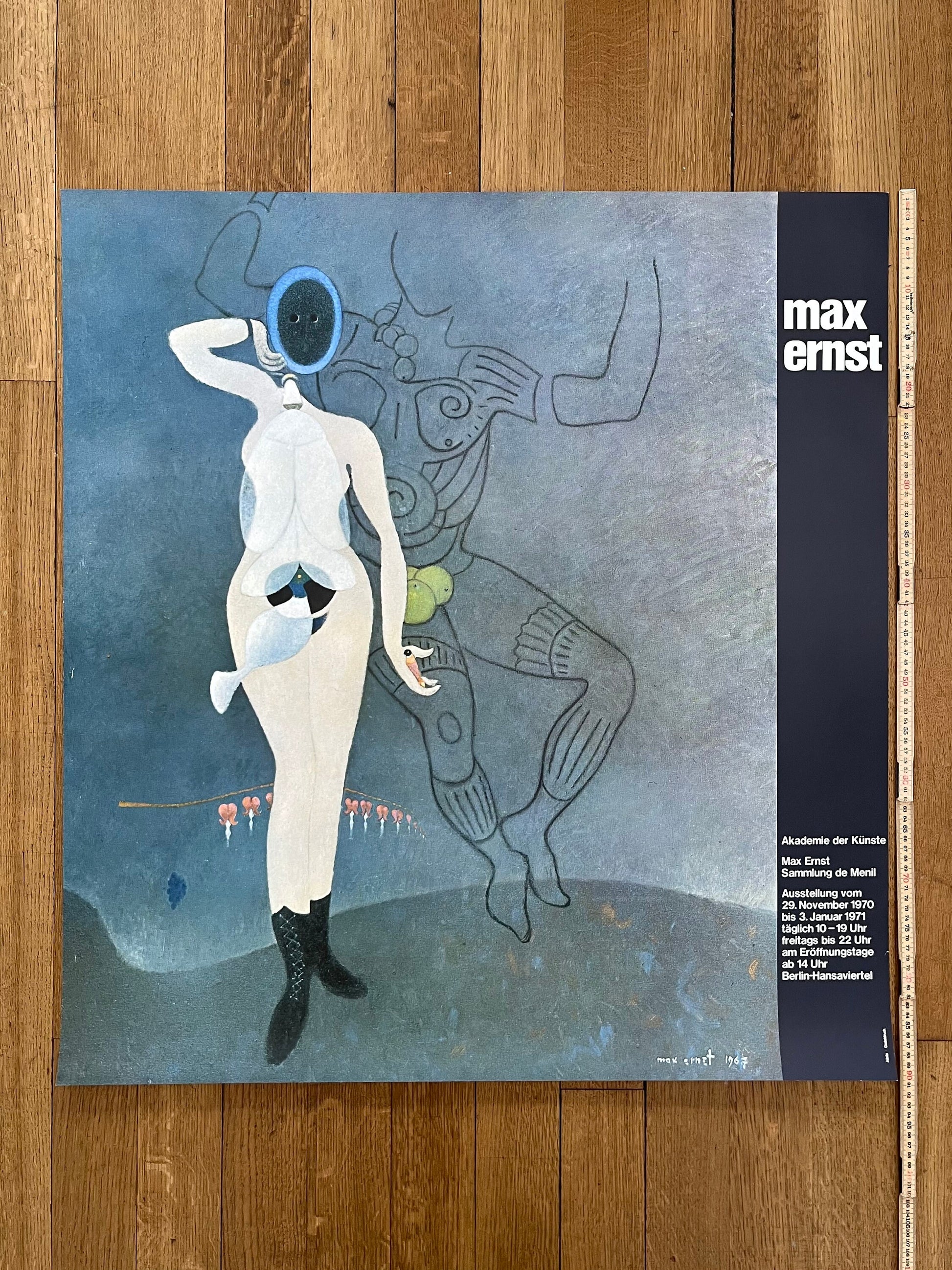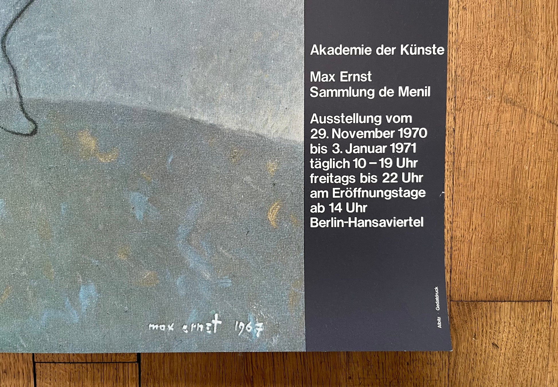 This original art poster by Max Ernst was released by the Akademie der Künste, Berlin, in 1970. It is in good condition with signs of handling along the borders and a tear at the left border.