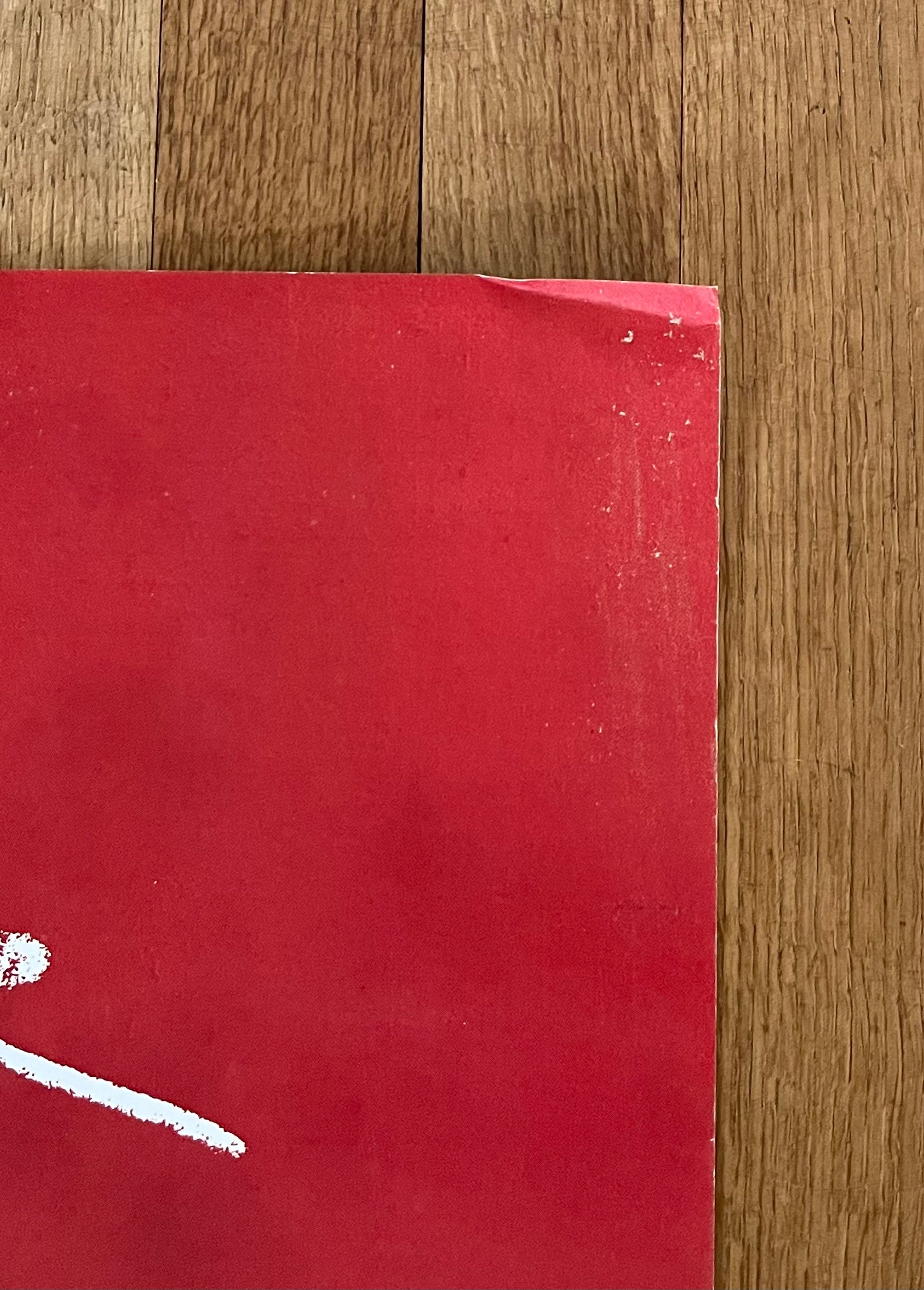 The poster is in good condition with signs of handling along the borders and some small parts of the ripped-off paper at the right bottom corner.