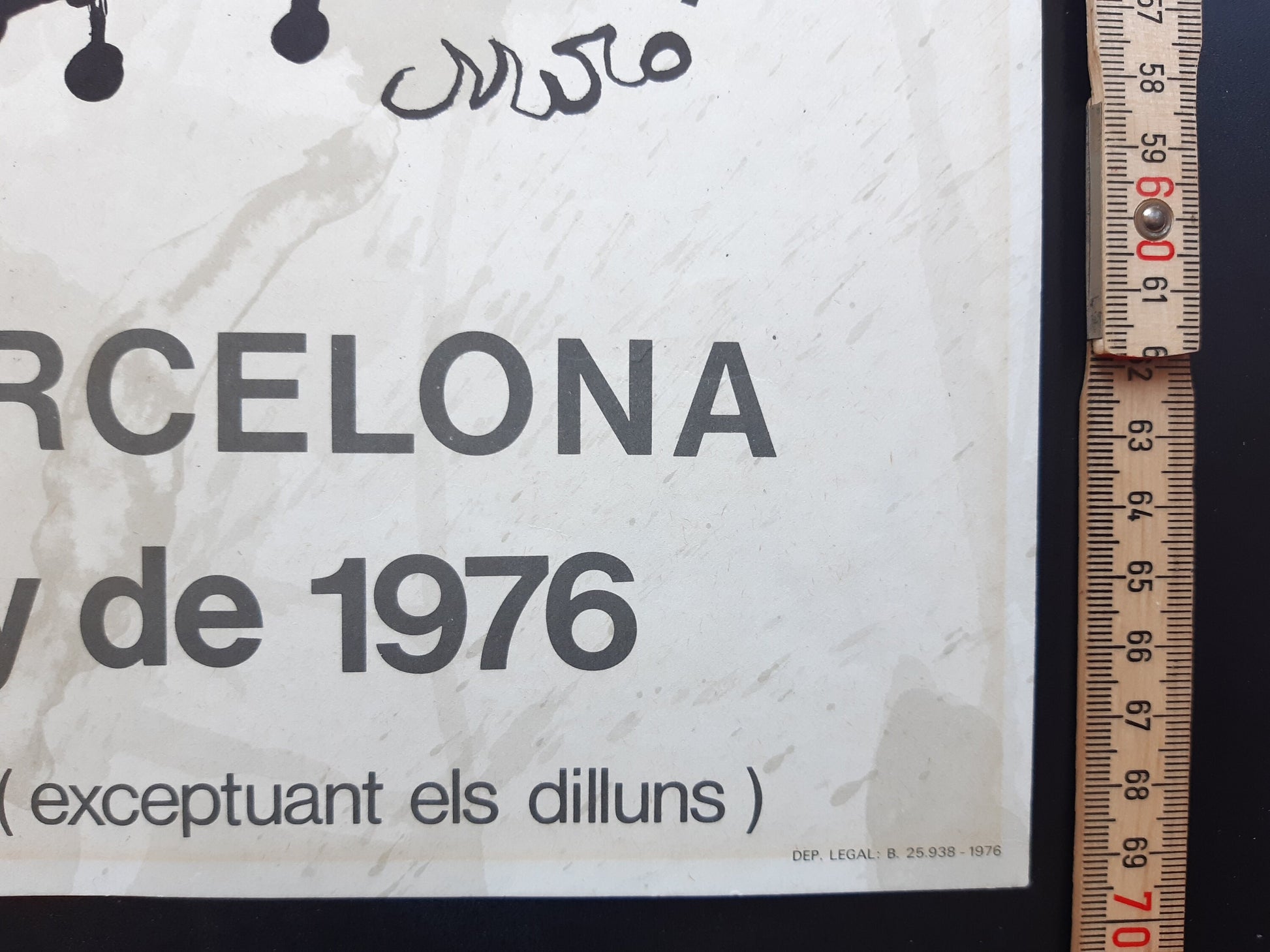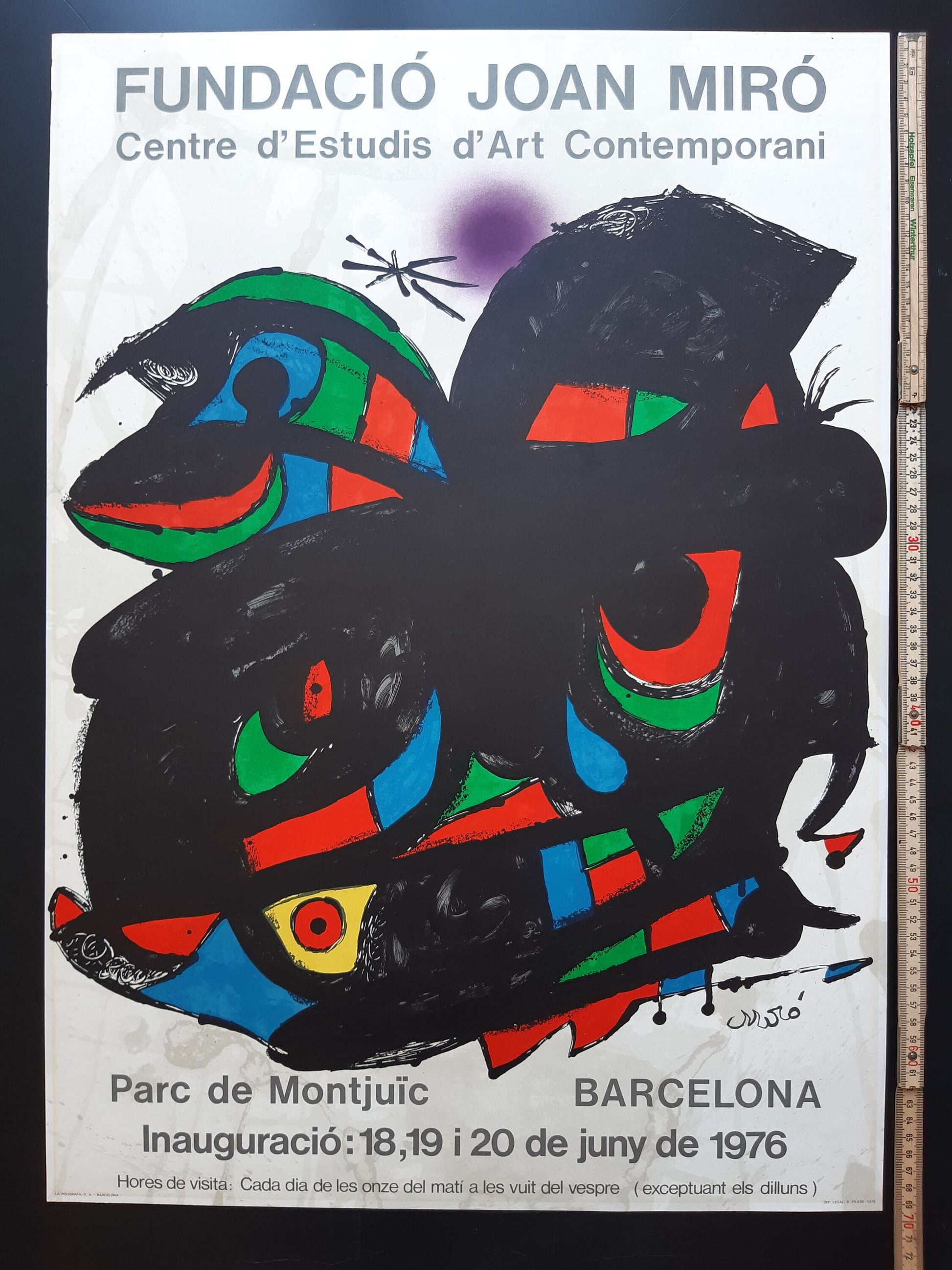 Original art poster by Miro. Advertisin an exhibition held in Barcelona at the Fondacion Joan Miro in 1976