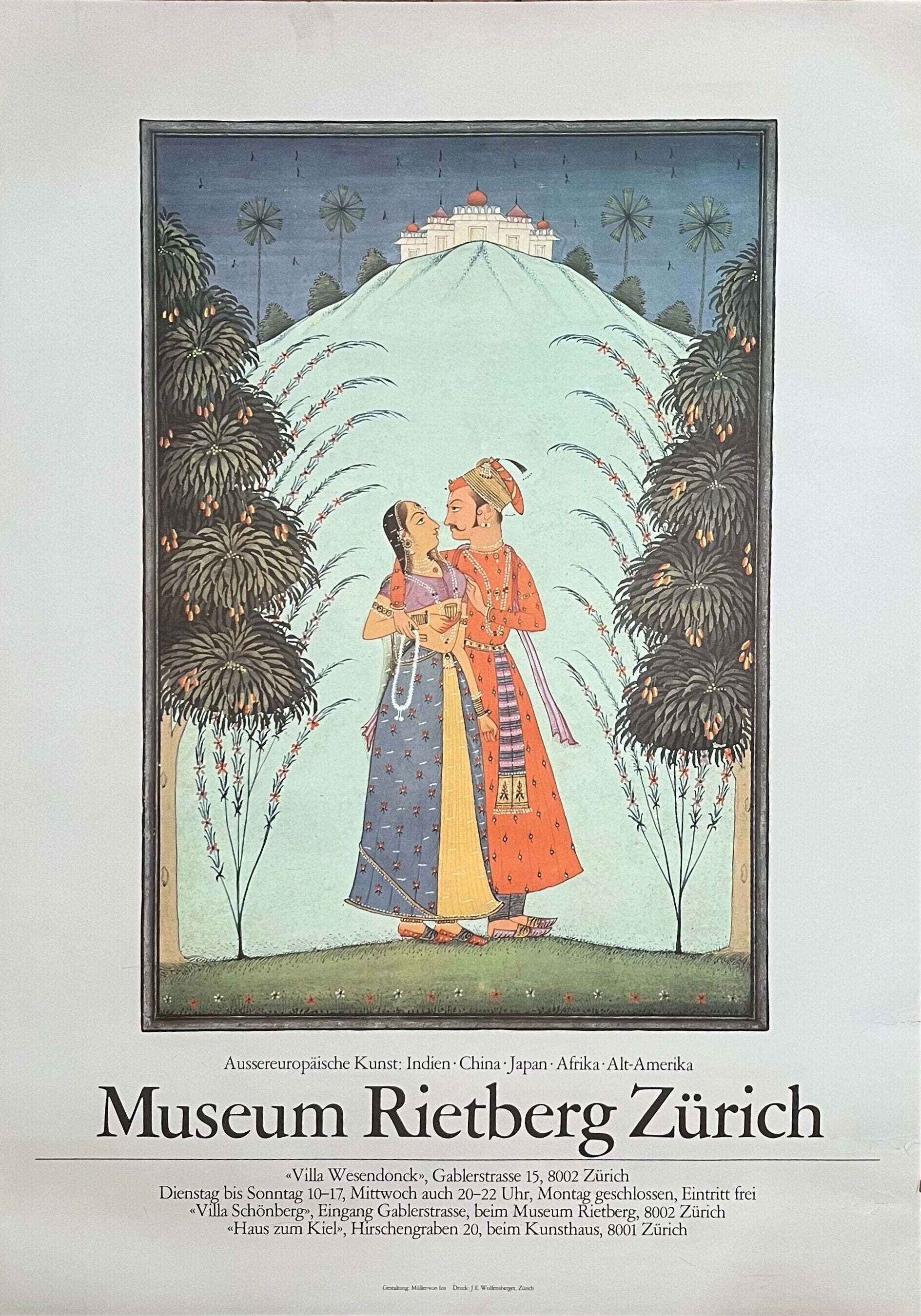 This is an original silkscreen-lithography art poster advertising the Museum Rietberg in Zurich. It is undated but might have been published in the 1980ties.
