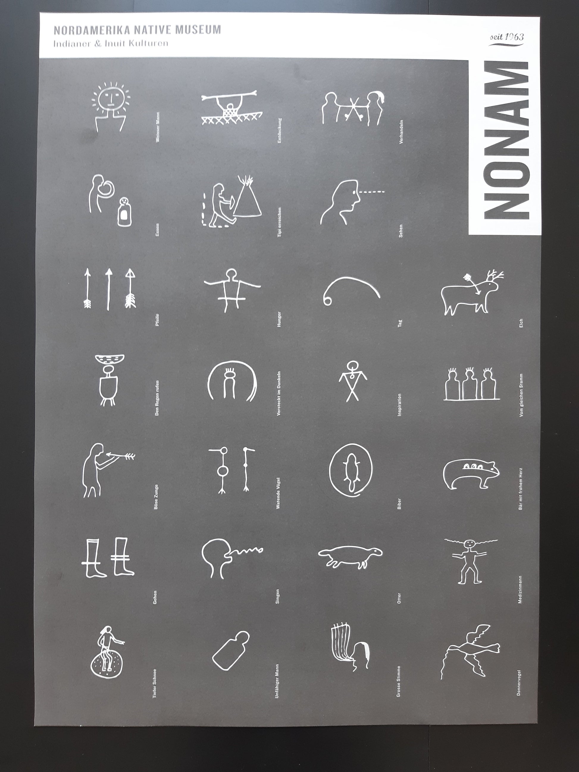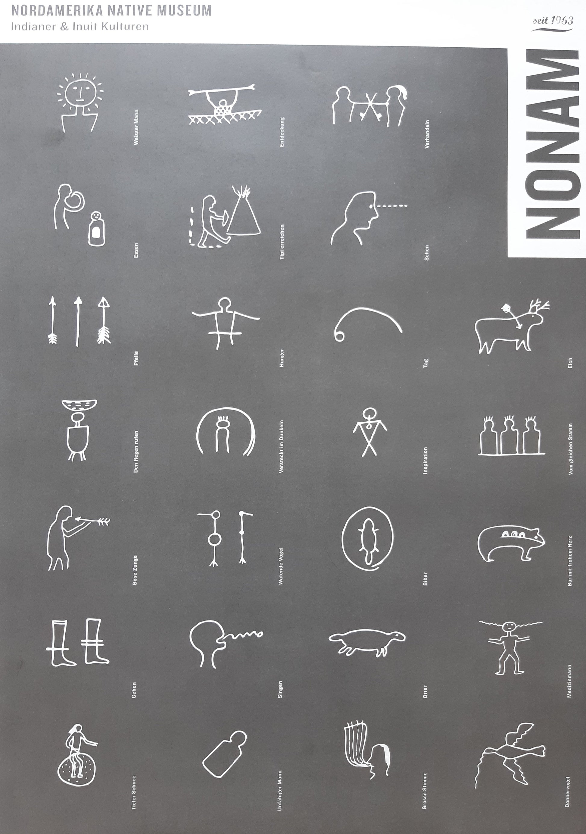 This is an original poster advertising the North American Native Museum in Zurich, Switzerland.