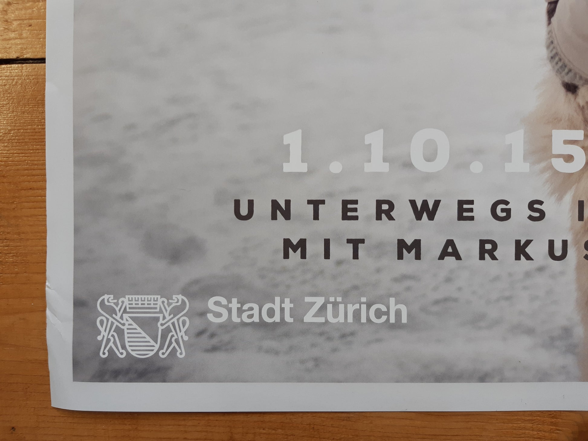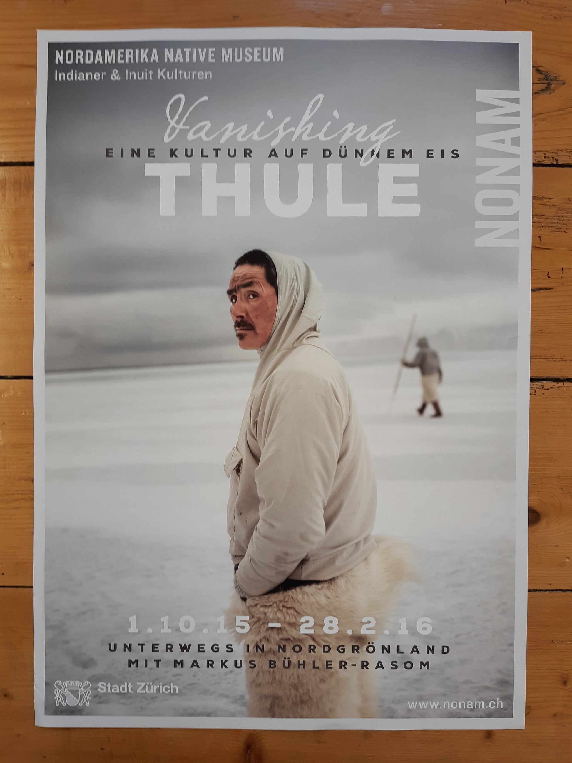 This is an original museum poster advertising an exhibition at the North American Native Museum in Zurich, Switzerland. Printed in 2016.