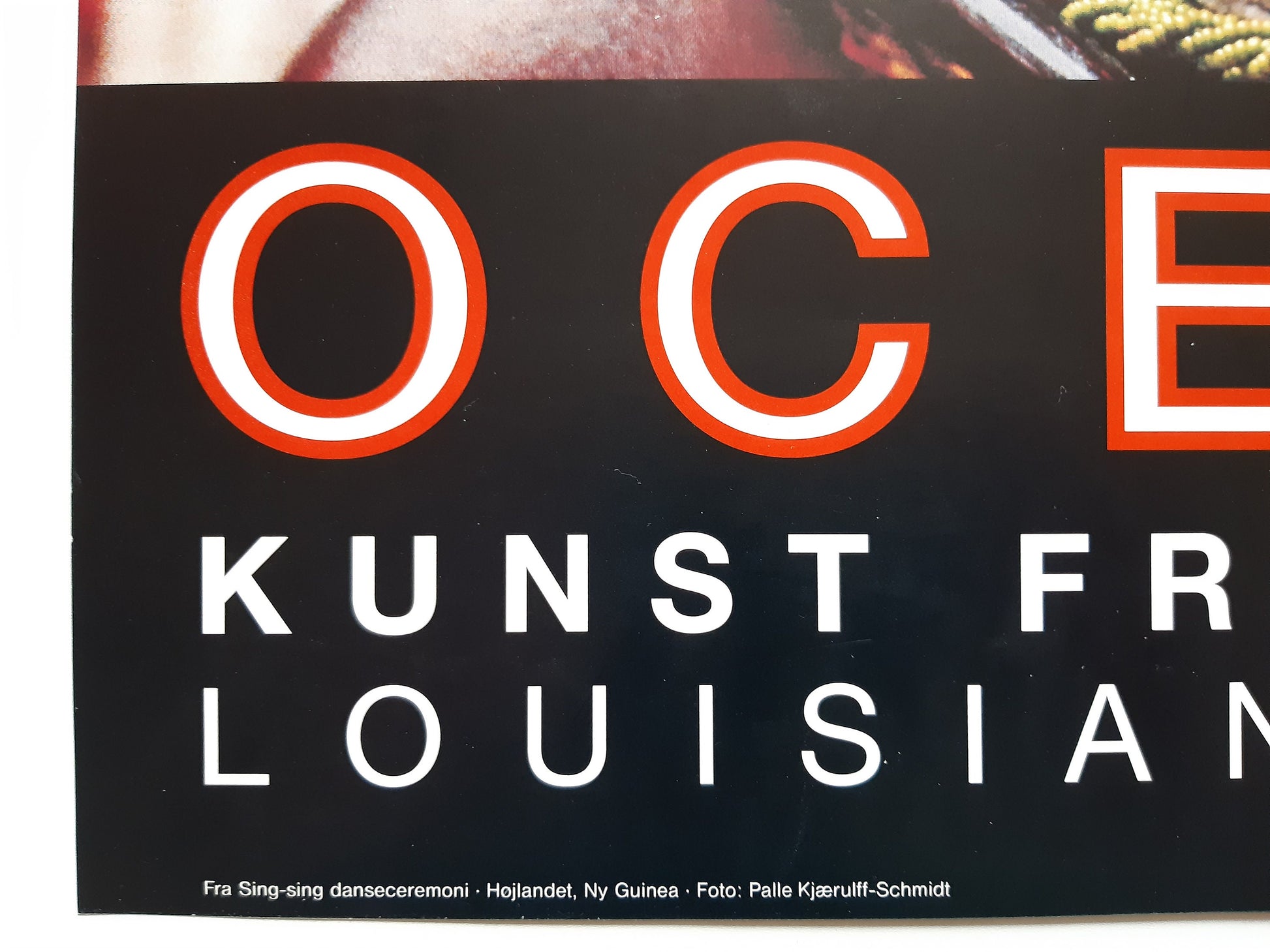 This original poster has been designed to advertise an exhibition at the Louisiana Museum in Denmark. It features a photo of a person of a Melanesian culture taking part at a ceremony.