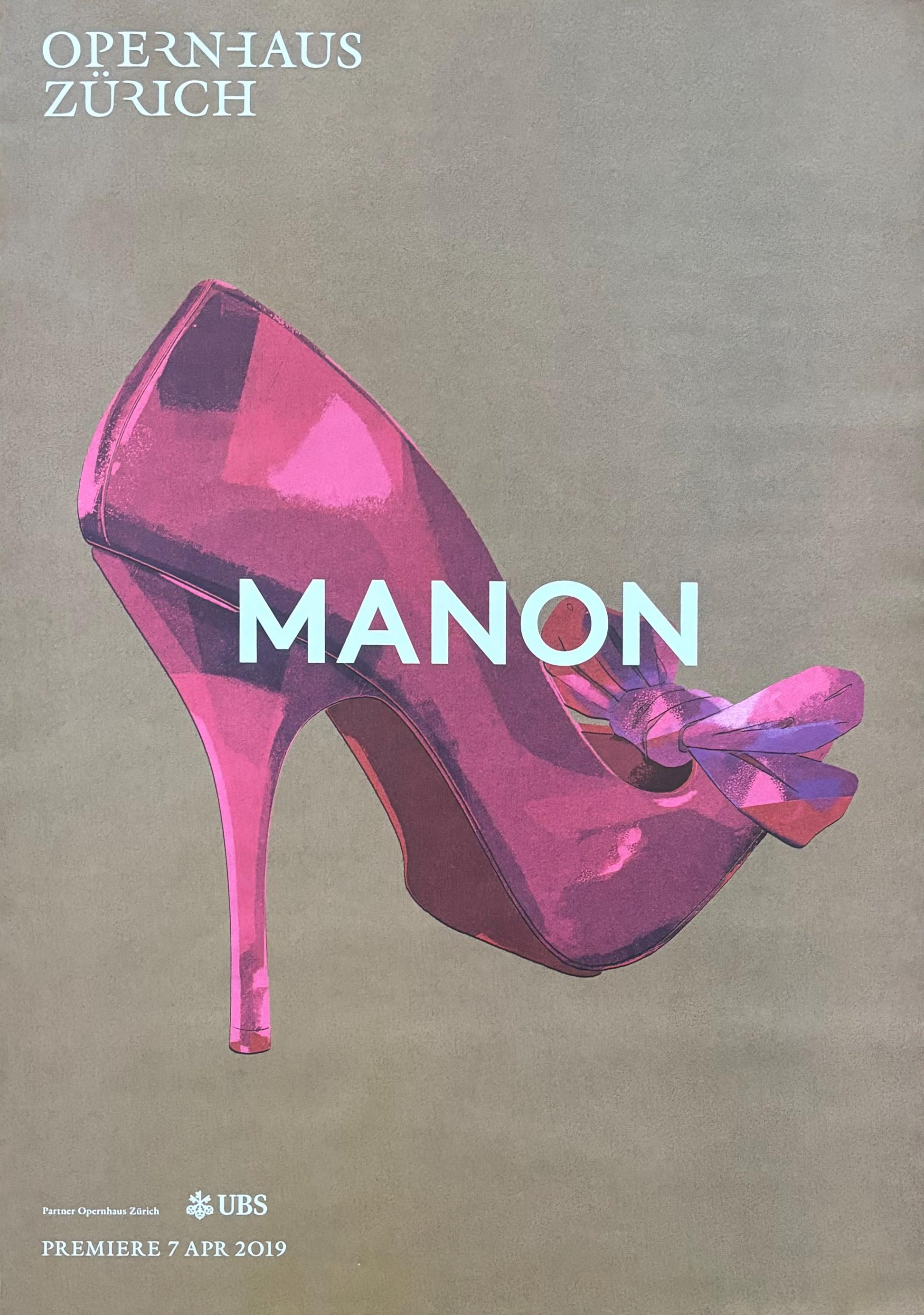 This is an original art poster by Opernhaus Zürich for the performance of the Opera "Manon" in 2019. The art was created by François Berthoud.