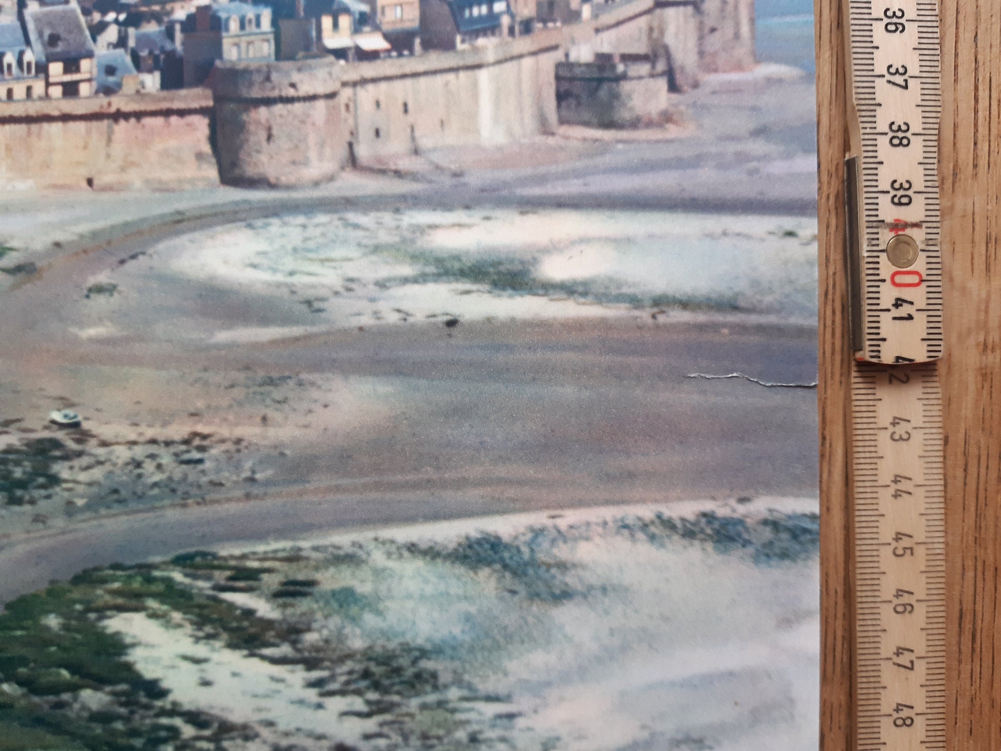 This is an original french travel poster produced in the 1950ties by the French government to advertise travelling to the Normandie. It is in good condition with some handling marks at the borders and one small tear to the right hand boder.