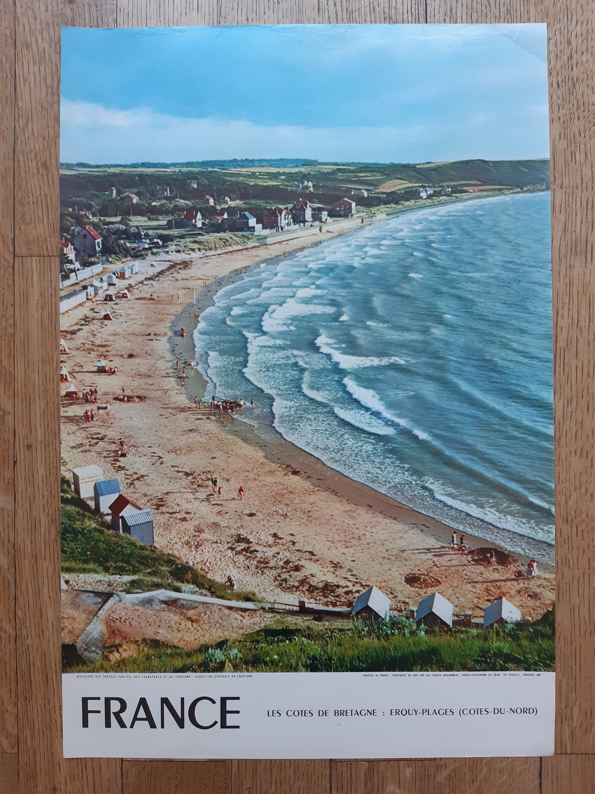 This is an original french travel poster produced in the 1950ties by the French government to advertise travelling to the area of Bretagne. It is in used condition with some handling marks, knitters and small tears.