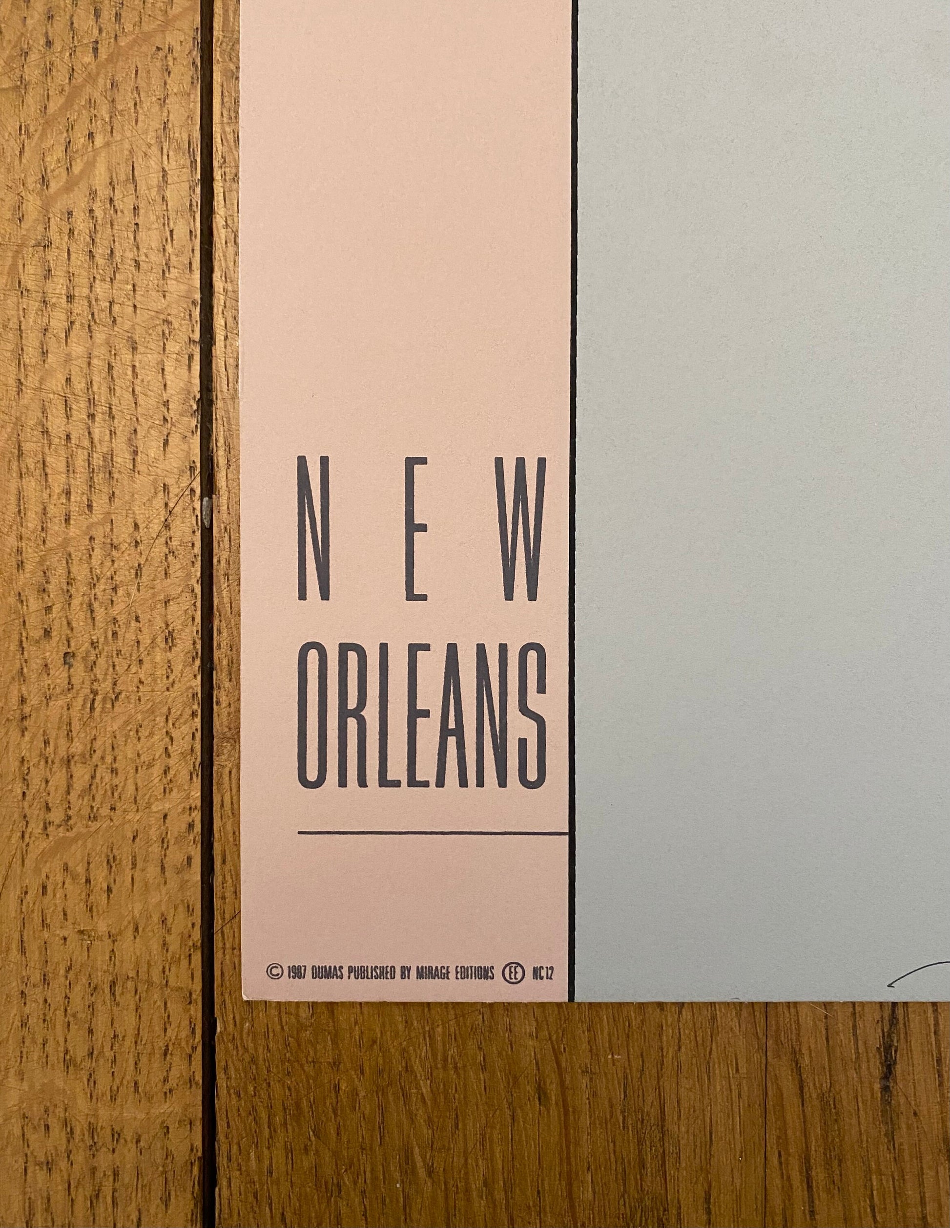This is a beautiful silkscreen-lithography art poster by American Patrick Nagel featuring an artwork of a woman's side profile and advertising an exhibition in New Orleans, USA in 1987.