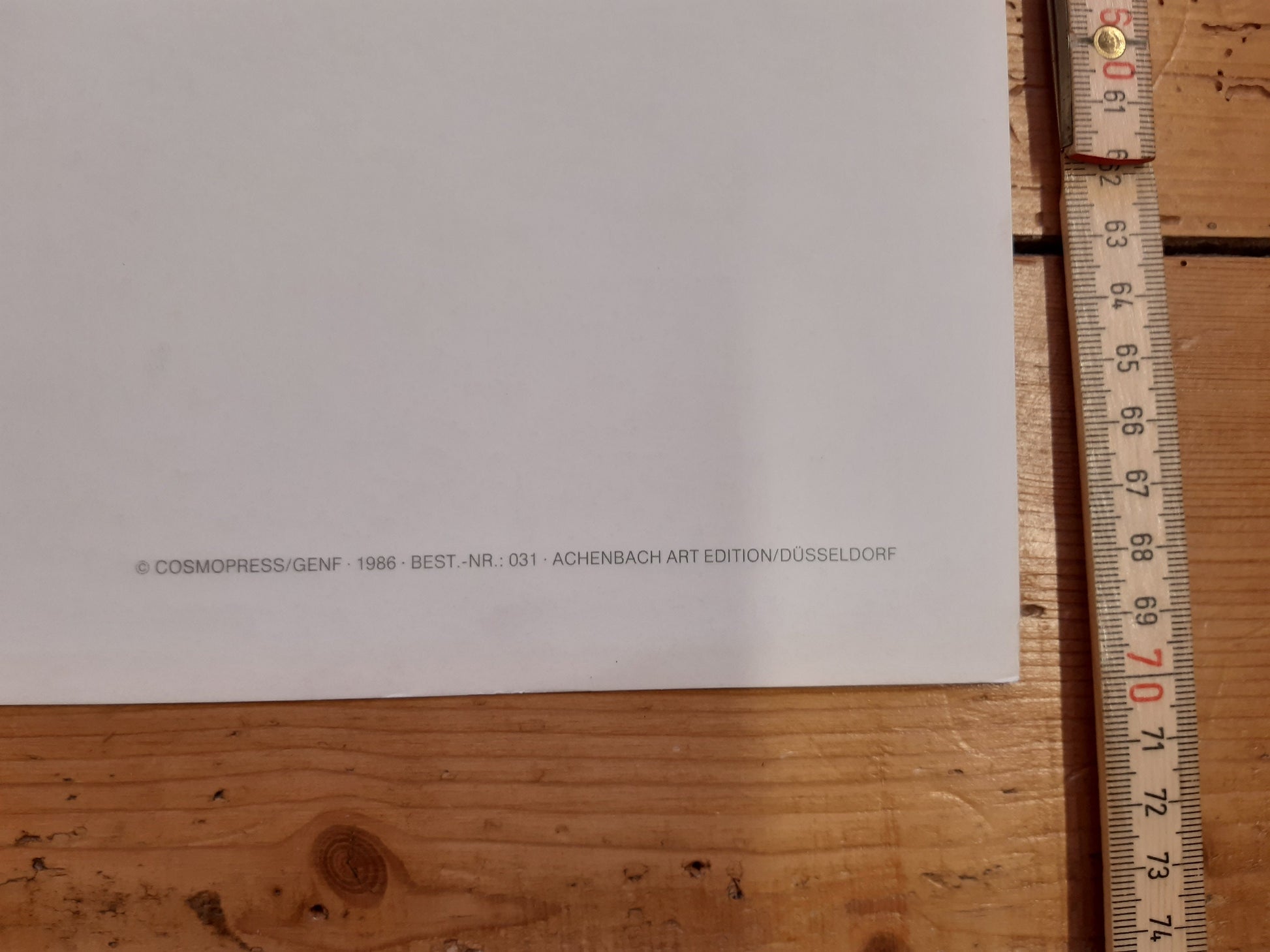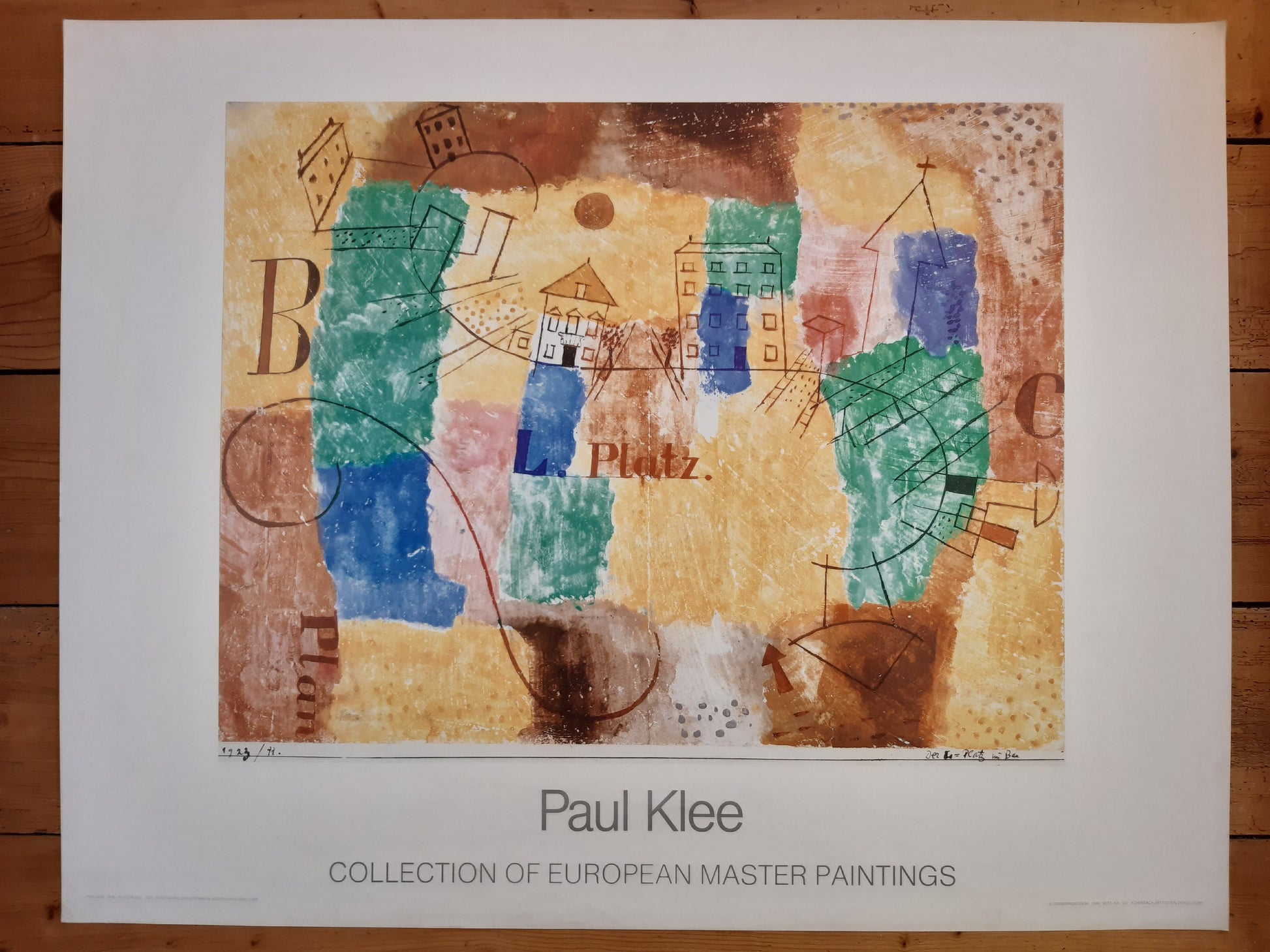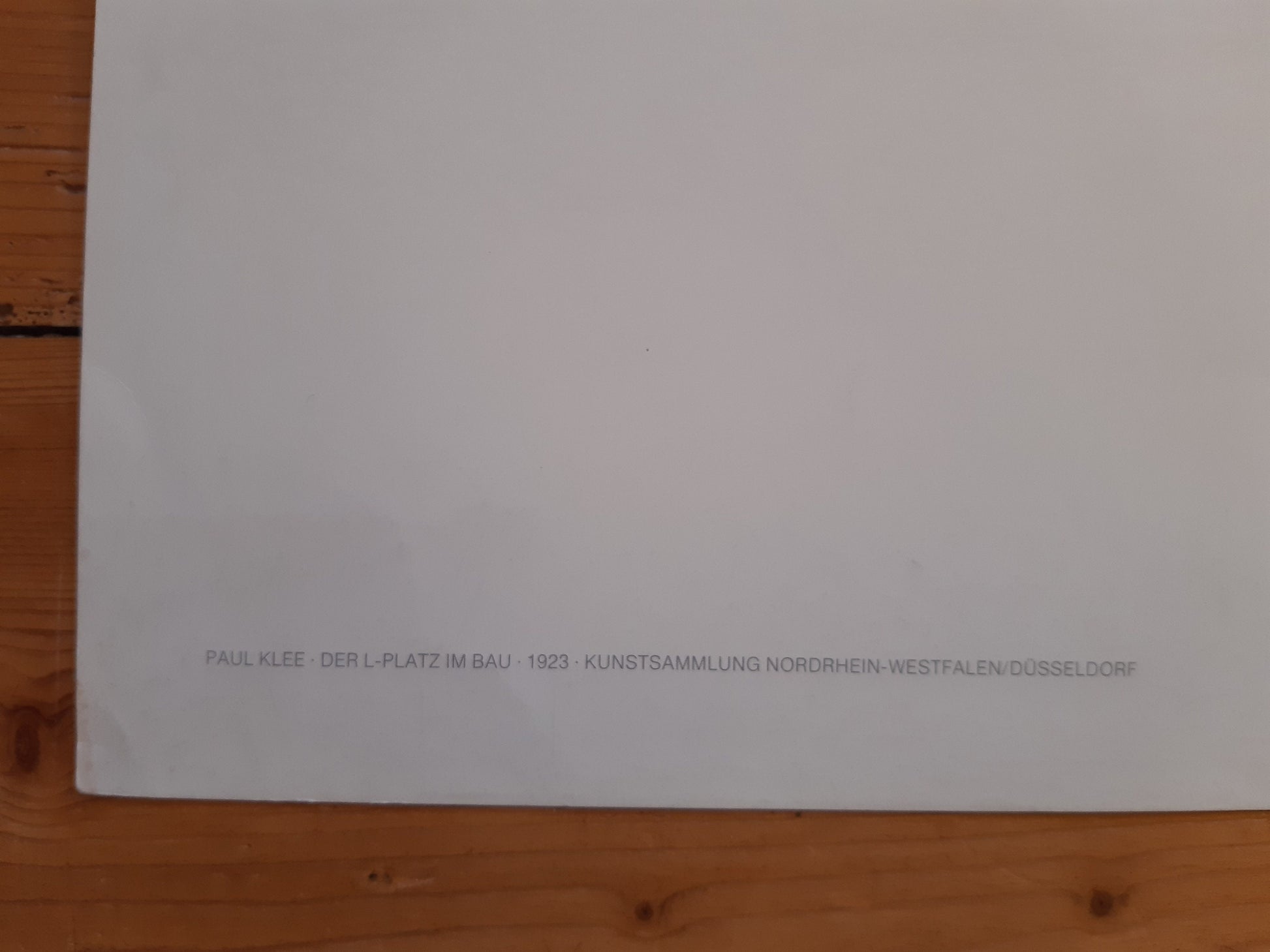 This is an original art print, released in 1986 by Cosmopress in Geneva. It features the painting "L-Platz im Bau", painted 1923.