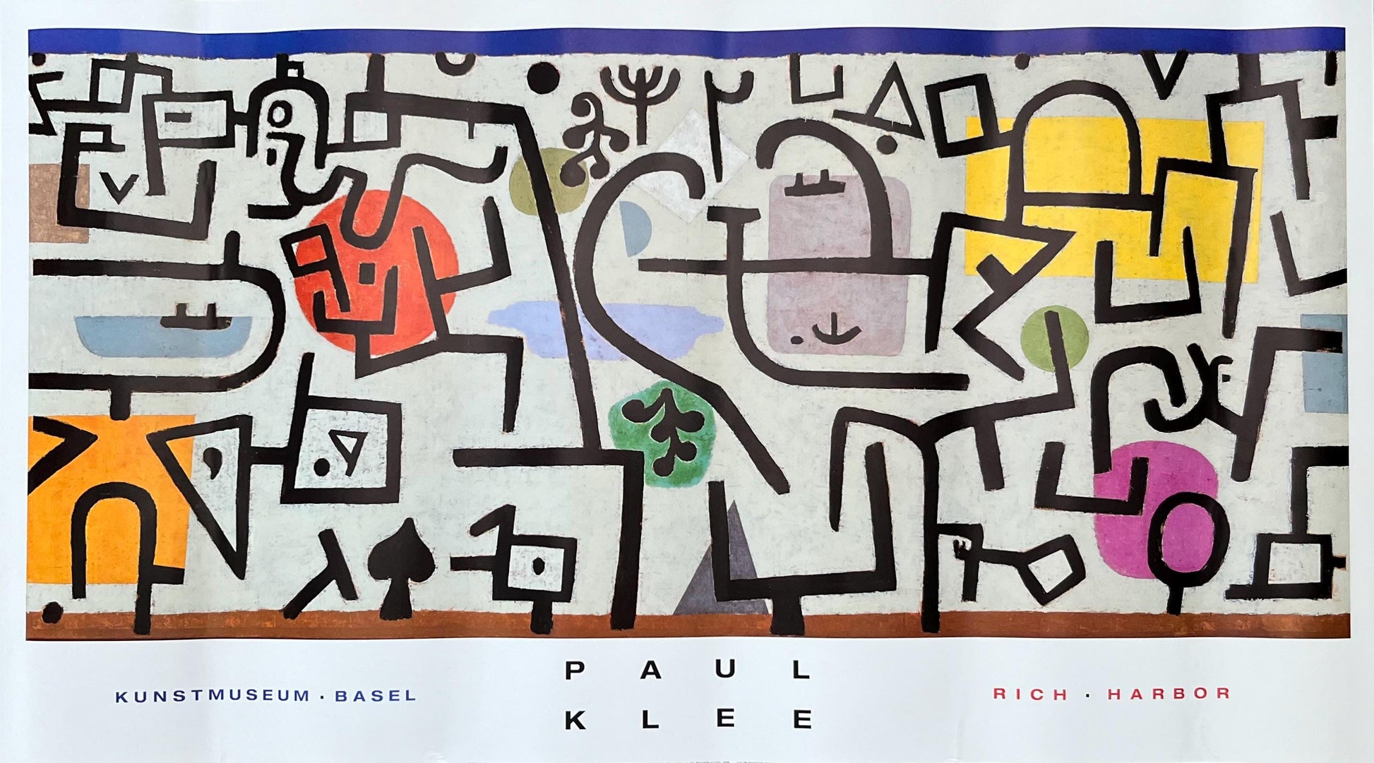 This is an original art poster featuring the work "Rich Harbor" by Paul Klee for the Kunstmuseum in Basel in 1988.