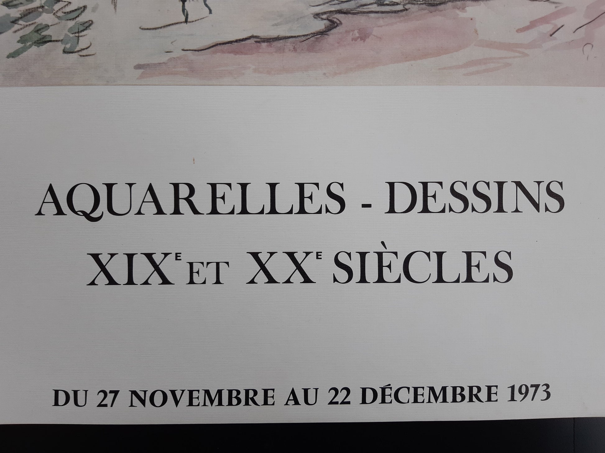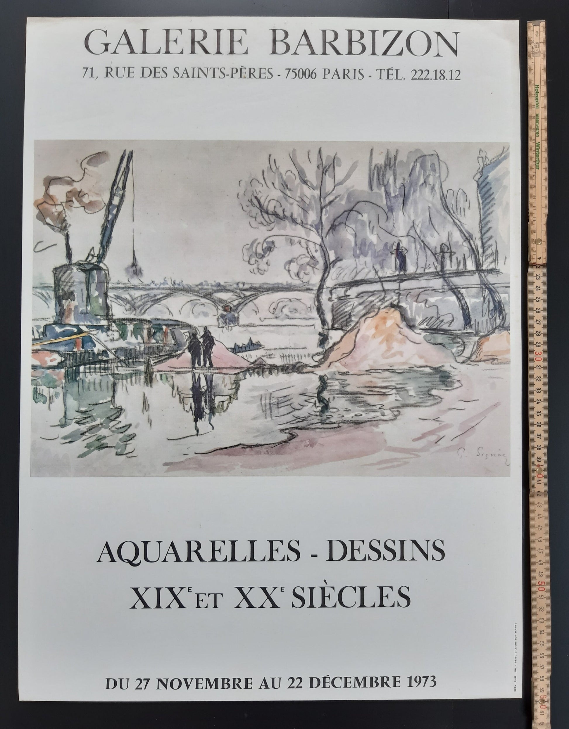 This is an art poster released for an exhibition at the Galerie Barbizon in Paris, France in 1973, featuring an aquarelle bei P. Signac.