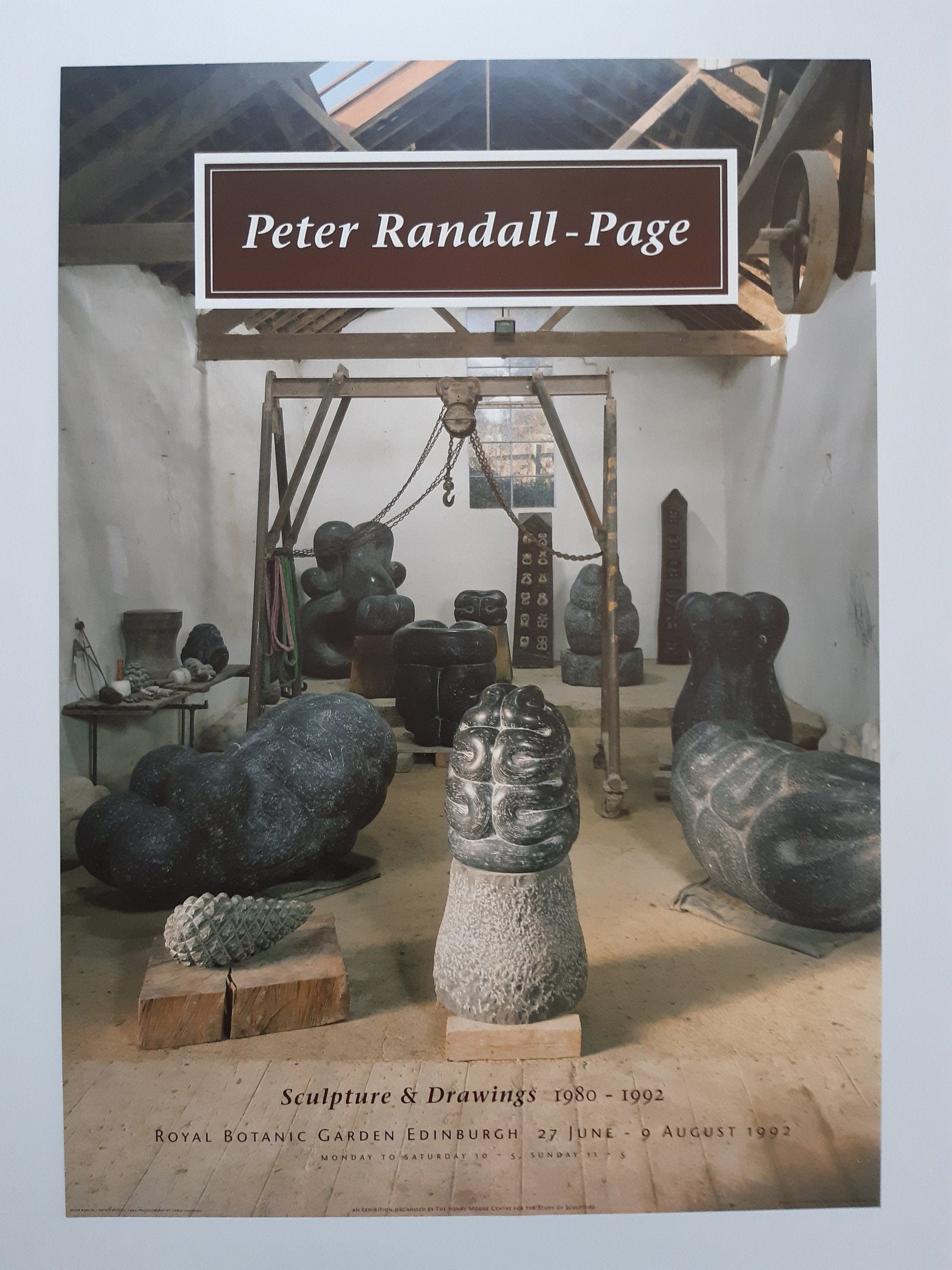 This is an original art poster to advertise an exhibition at the Royal Botanic Garden Edinburgh in 1992. It features a photograph (by Chris Chapman) with sculpture works of Peter Randall-Page.