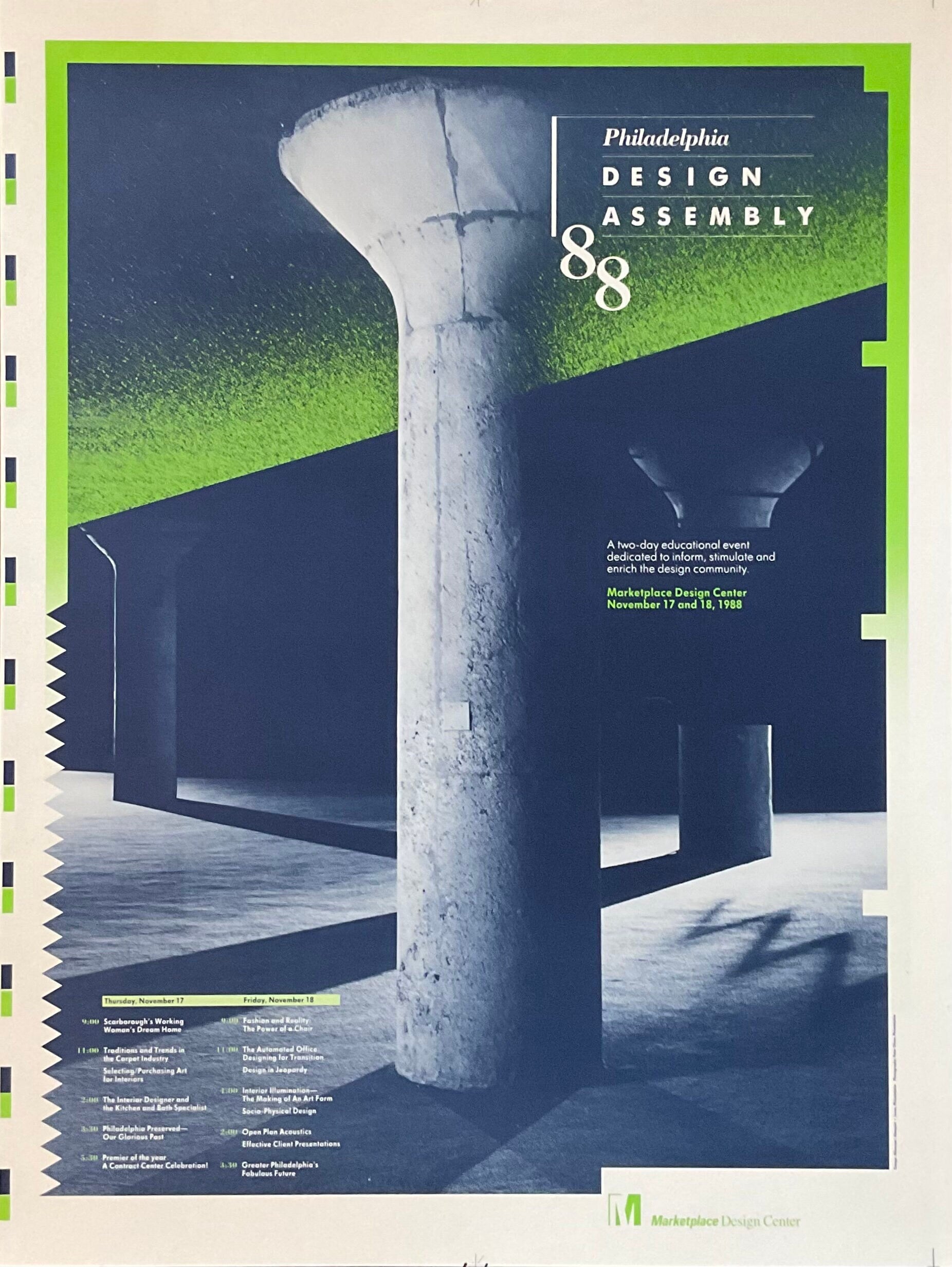 This is an original art poster adertising the Philadelphian Design Assembly exhibition in 1988. The poster is in good condition with minimal signs of handling along the borders.