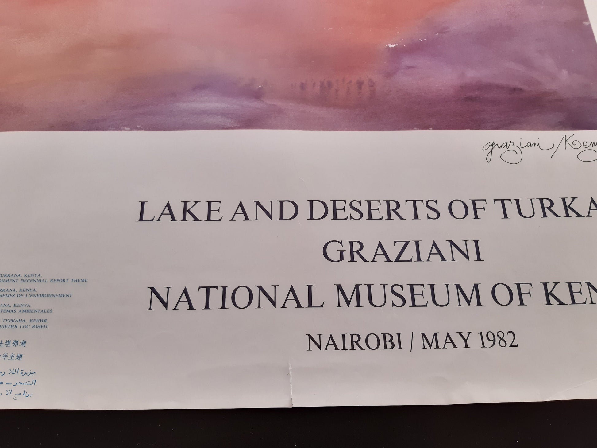 This is an original art poster featuring an artwork by Pierre Graziani (French, born 1932) for an exhibition at the National ;useum of kenya in Nairobi in 1982.