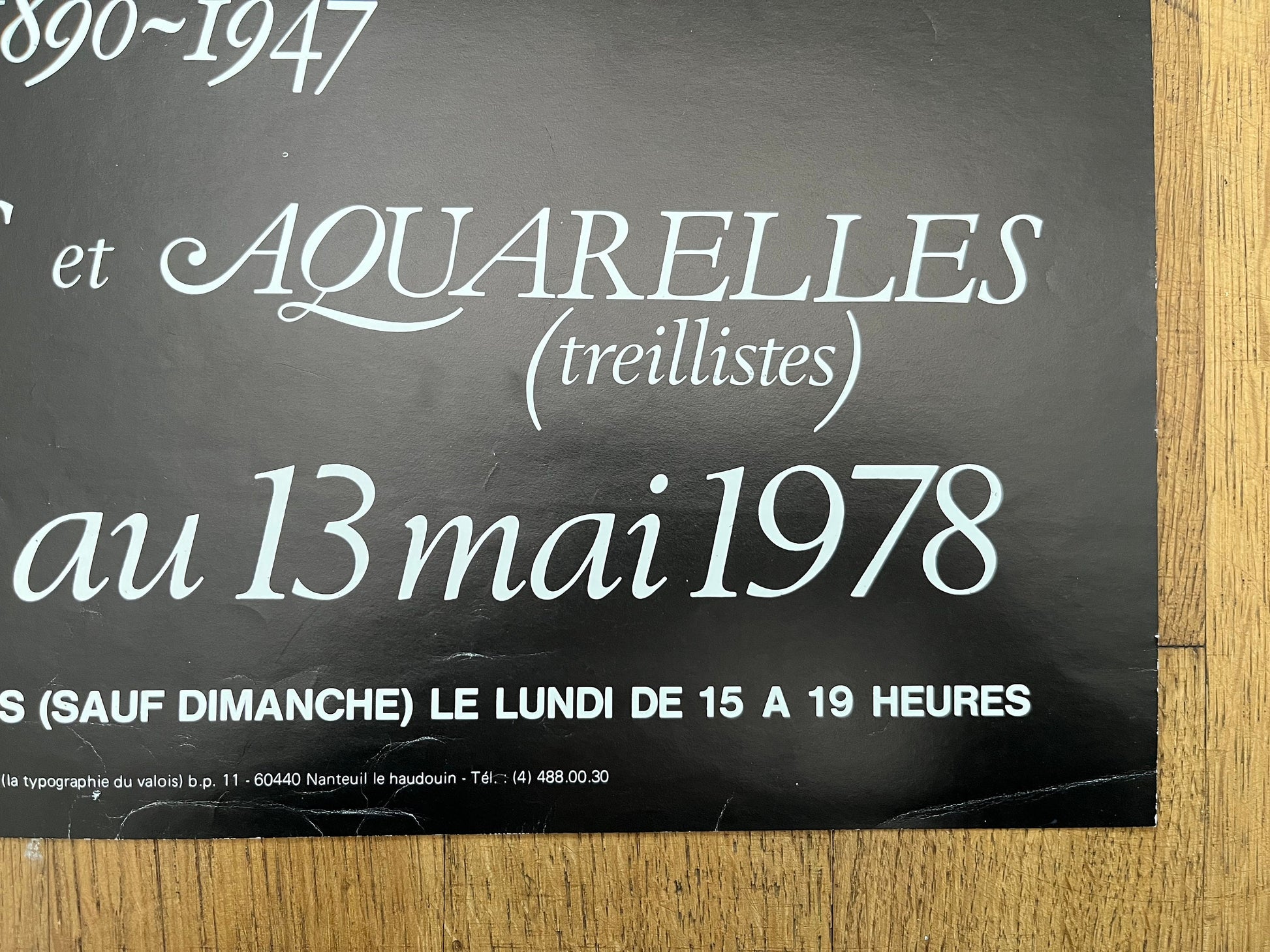 This is an art poster print by Pierre de Belay advertising an exhibition at the "Galerie Saint-Augustin" in Paris in 1978. It is in good condition with signs of handling, pinholes and scratches at the bottom part.