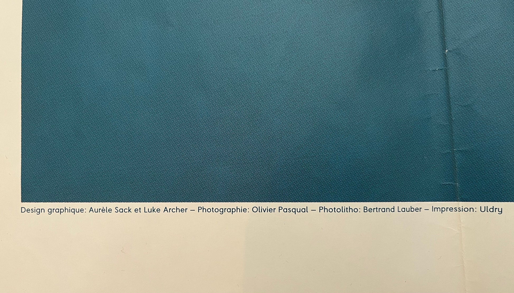 This is an art poster depicting the artwork " Playmobile Fab. ", designed by Aurèle Sack and Luke Archer and released by the mudac, Museum of Contemporary Design and Applied Arts in Lausanne.