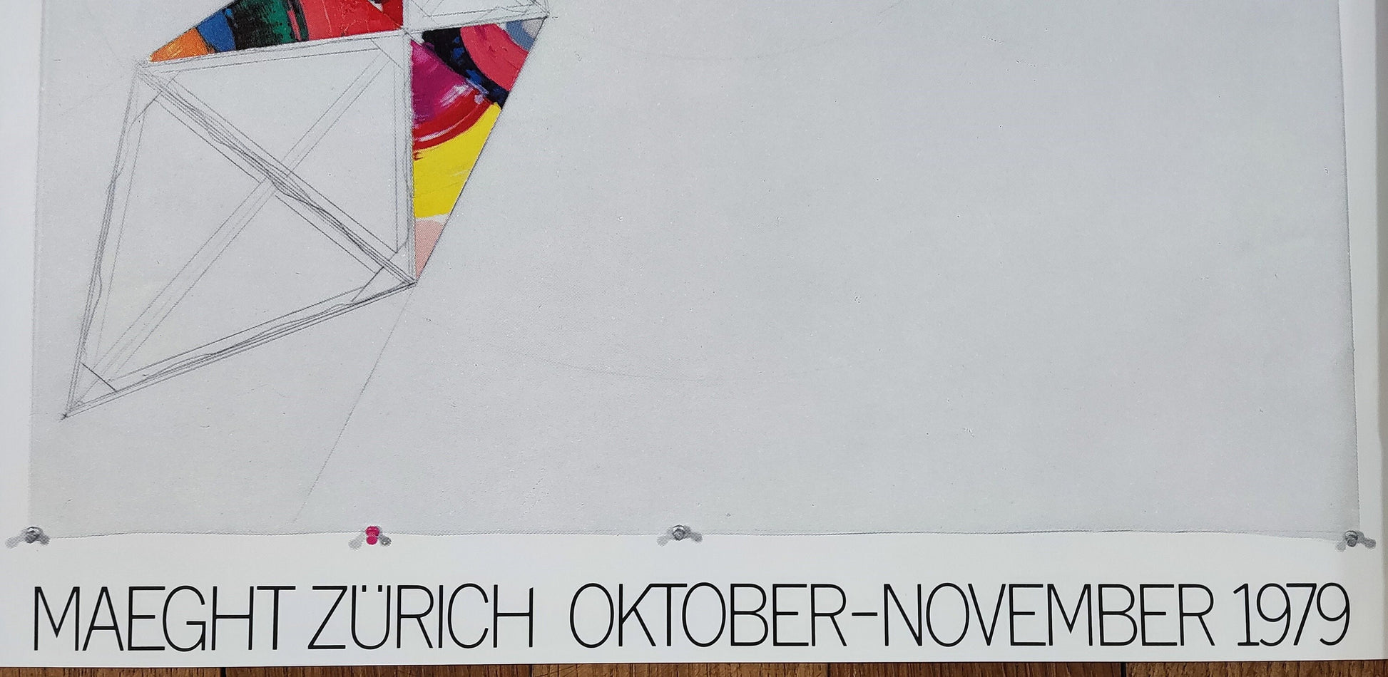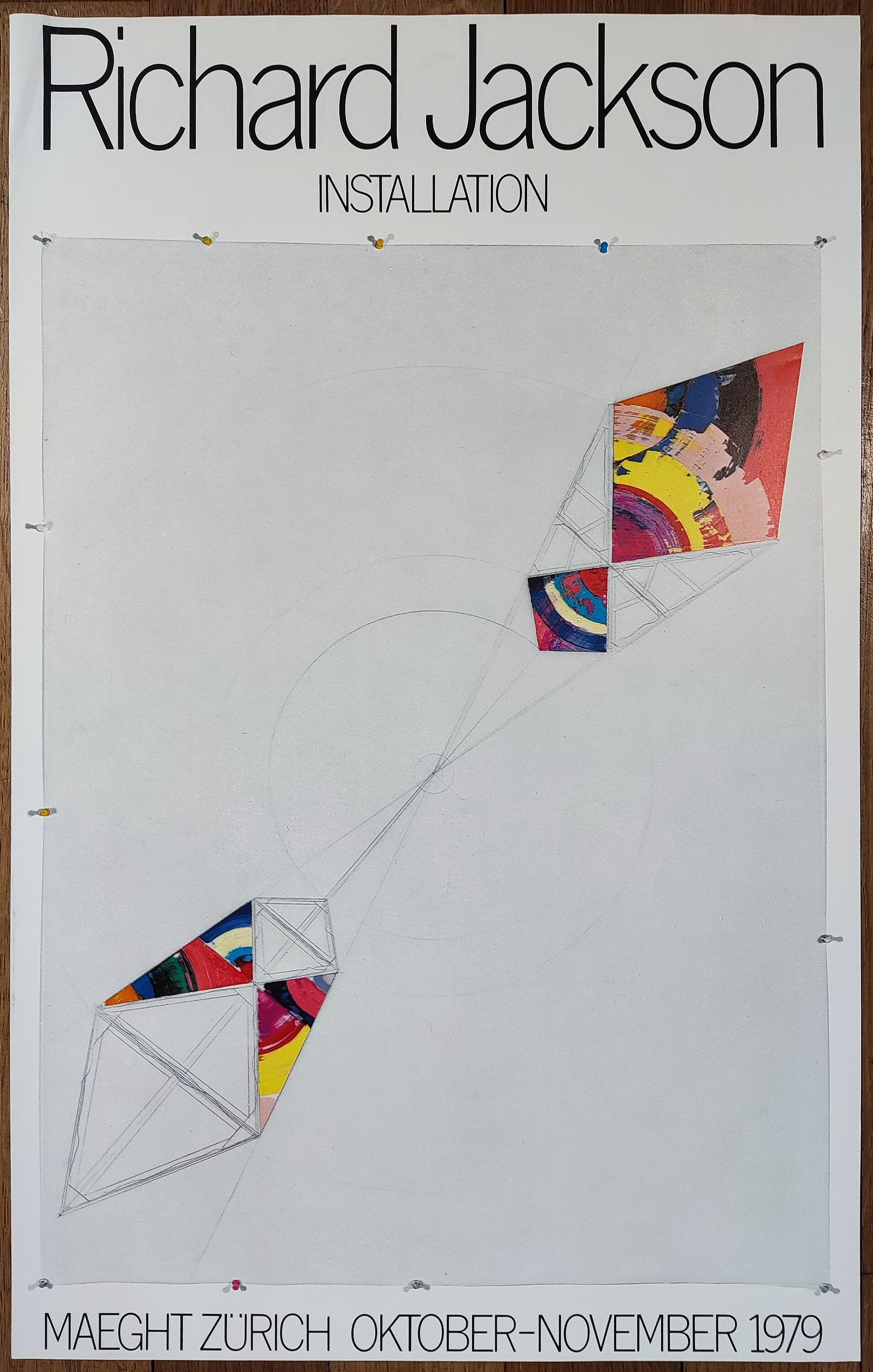 Beautiful art poster by american Richard Jackson featuring a work of his "Installation"-Collection and advertising an exhibition at the Gallerie Maeght in Zurich in 1979.