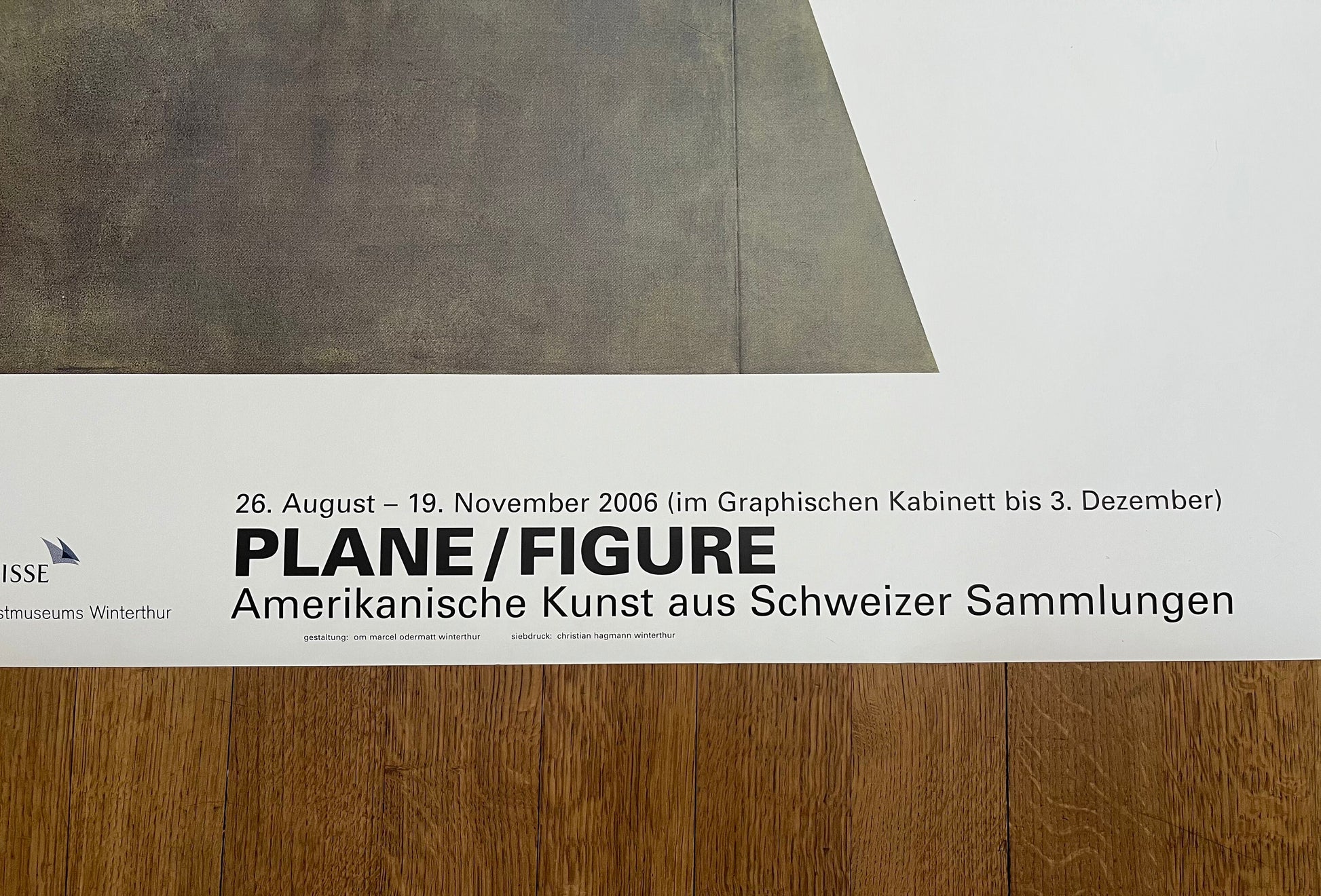This is an original art poster that was released by the Kunstmuseum Winterthur in 2006 and is featuring a painting by Robert Mangold. The painting Plane / Figure was made in 1992 and is part of the exhibition Amerikanische Kunst aus Schweizer Sammlung.