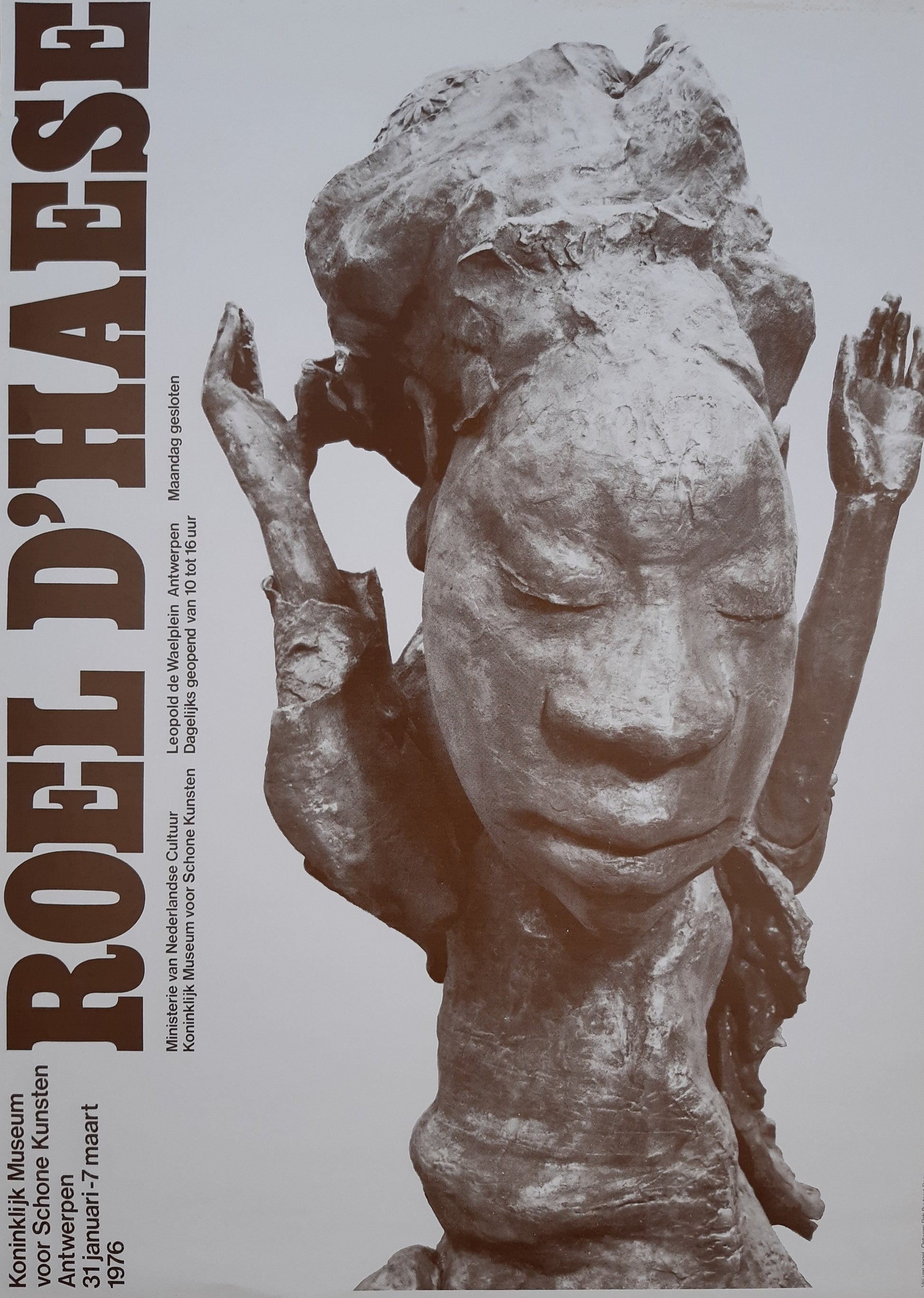 This poster by Roel d'Haese was published in 1976 by the Koninklijk museum schone kunsten in Antwerpen in 1976. Roel d'Haese (1921-1996) was a Belgian sculptor who is best known for his surreal sculptures.