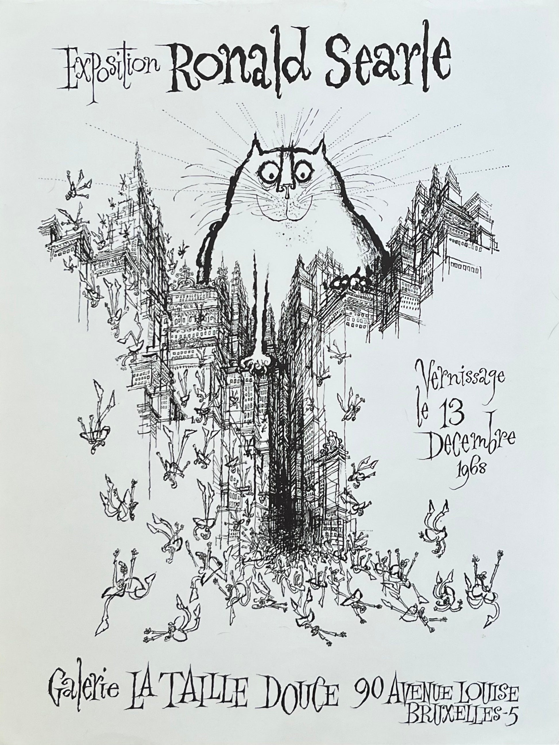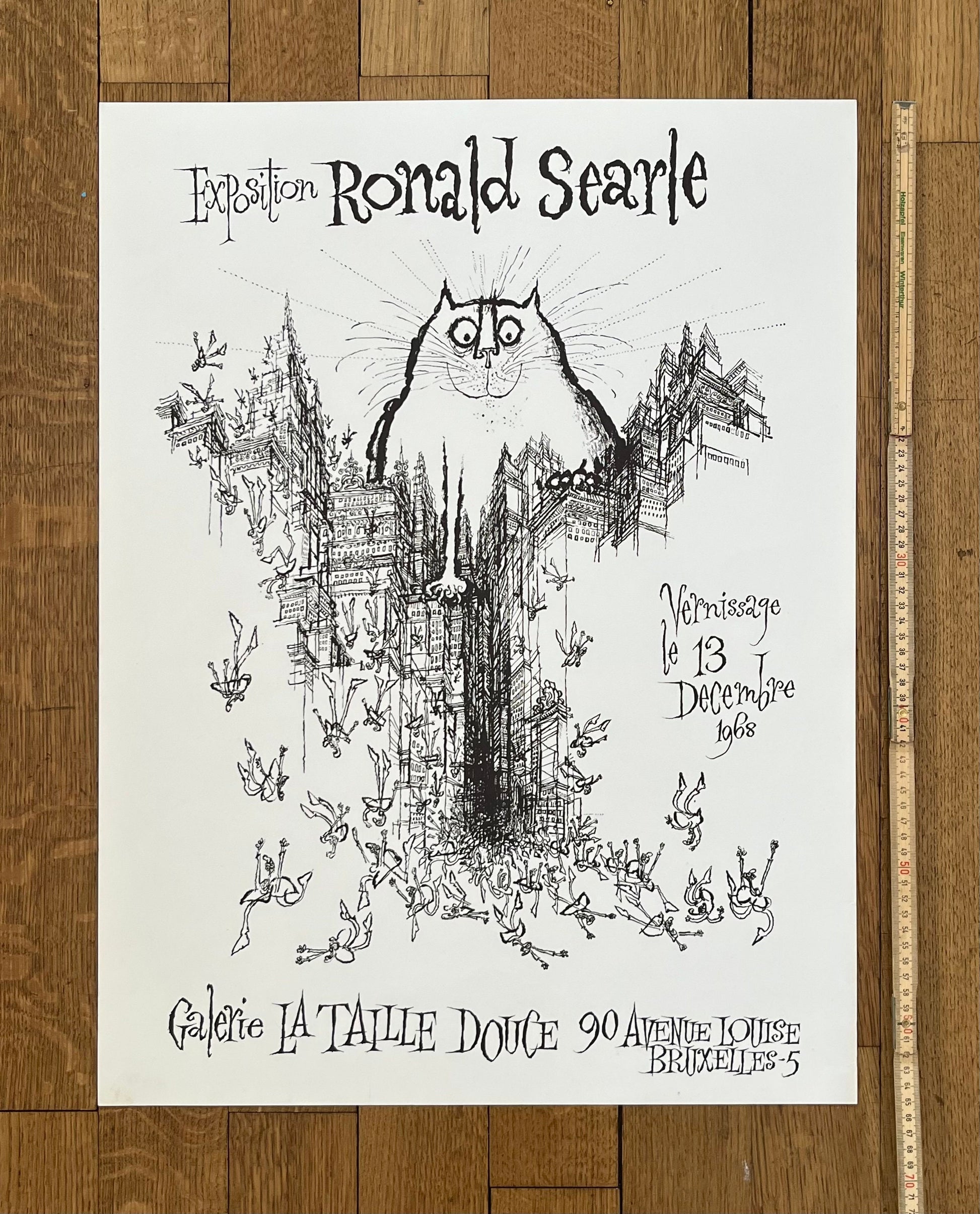This is a beautiful silkscreen-lithography art poster by Ronald Searle advertising an exhbition at the Galerie La Taille Douce in Brussels in 1968. The poster is in good condition with signs of handling along the borders and one tear (1cm) at the top border.