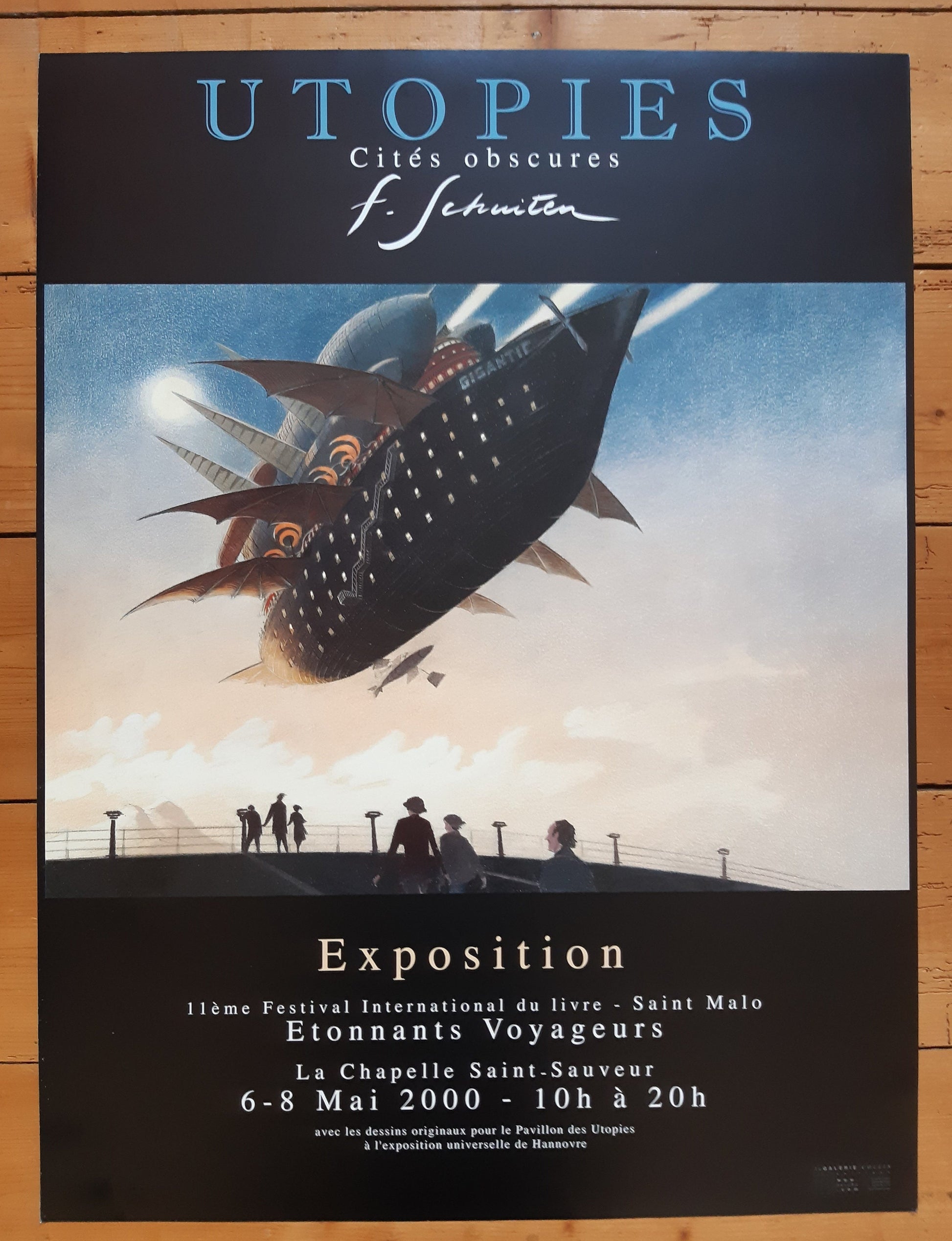 This is an original art exhibition poster featuring an artwork by F. Schuiten. It is in good condition with only light handling marks. It has been designed for an exhibition in 2000 in France.
