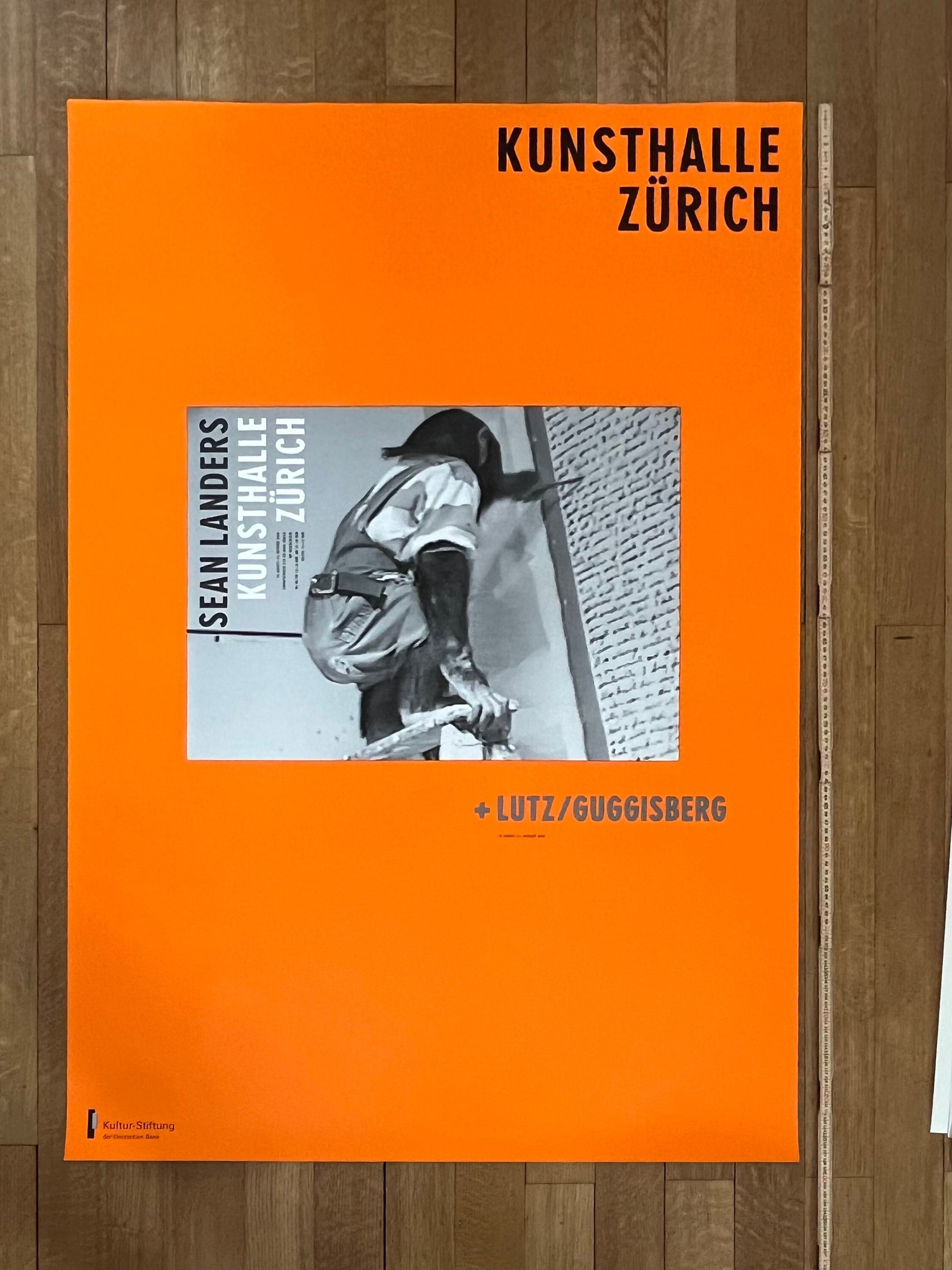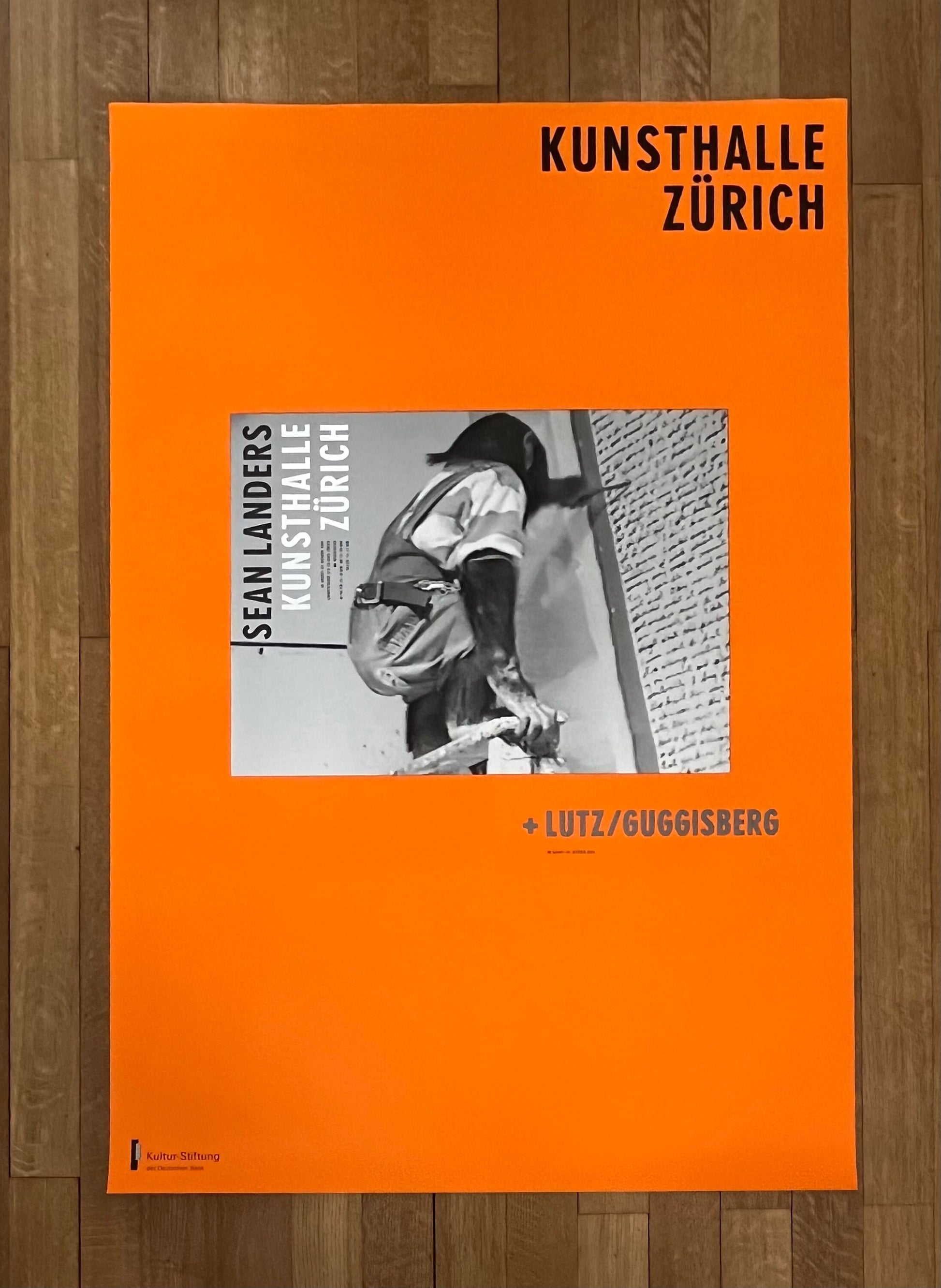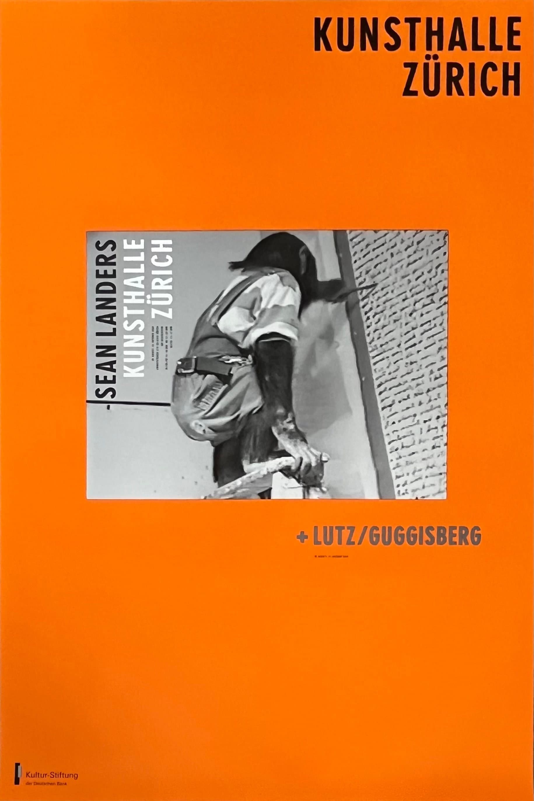 This is an original art poster by Sean Landers featuring a work of a painting monkey and advertising an exhibition at the Kunsthalle Zürich in 2004. The poster is in good condition with minimal signs of handling along the borders.