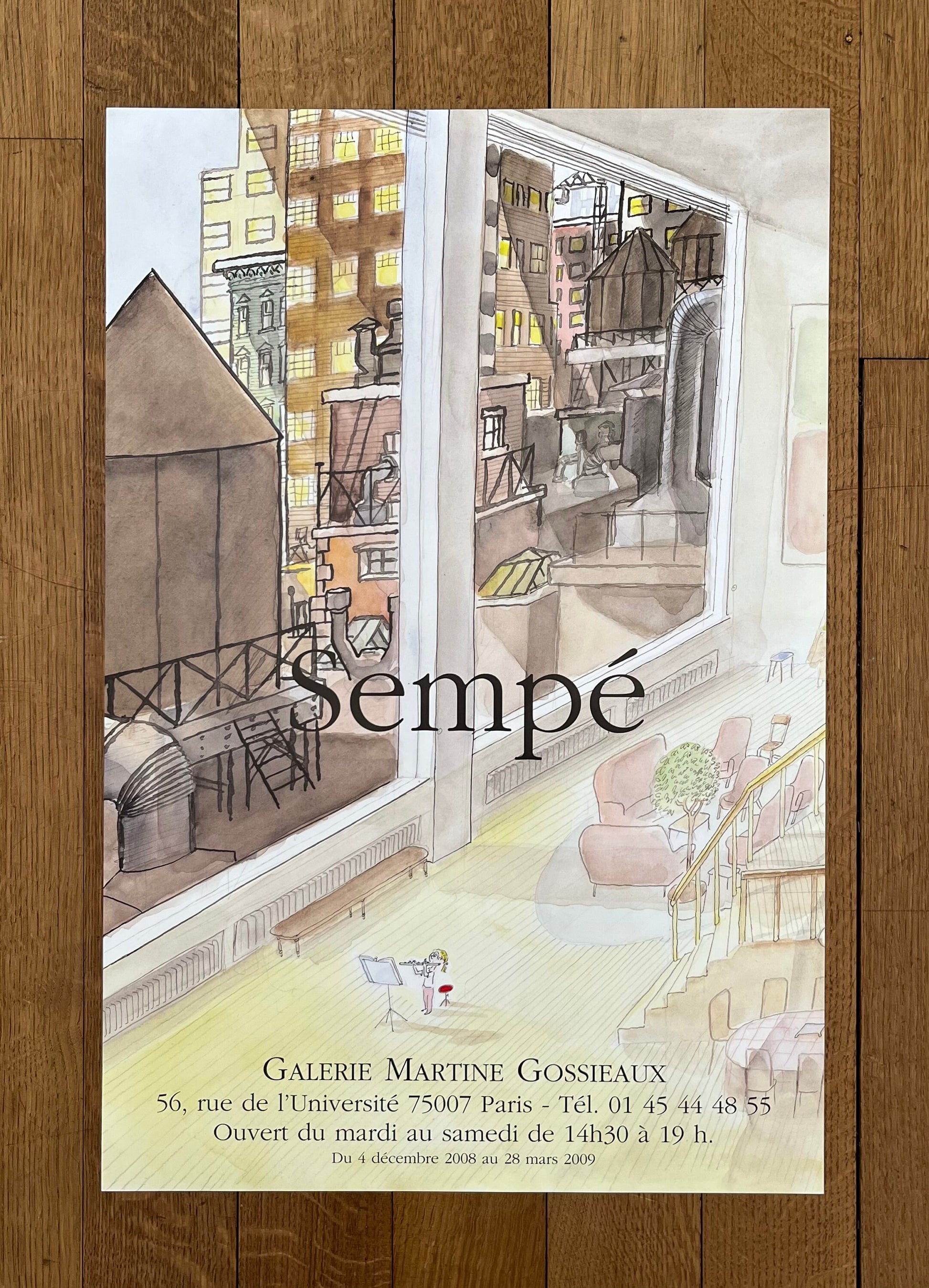 Original and beautiful poster with an illustration by Jean-Jaque Sempé for the Galerie Martine Gossieaux in 2008. The poster is in good, near mint condition.