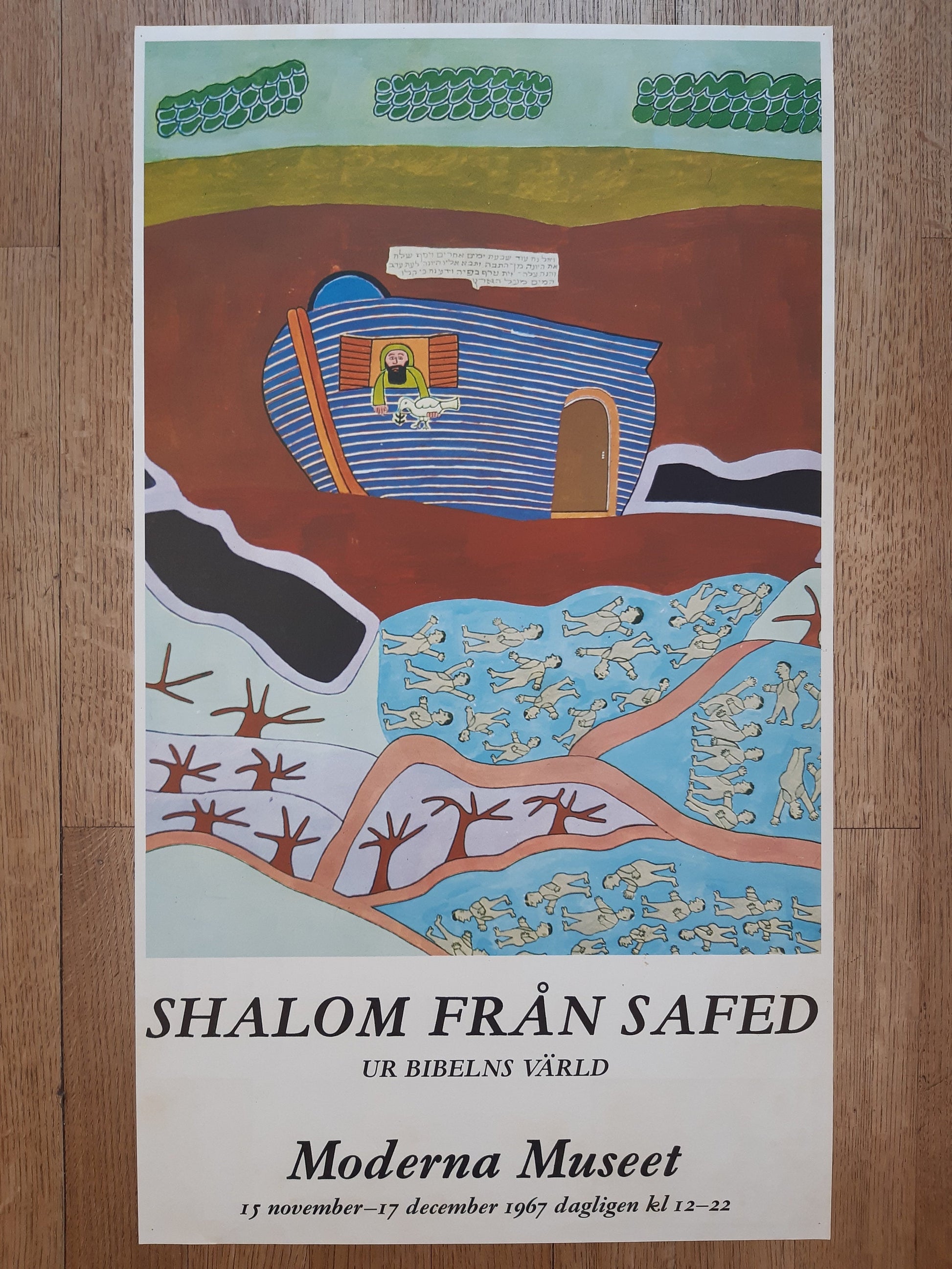 This is a beautiful exhibition poster made in 1967 by the Moderna Museet in Denmark with an artwork by Shalom of Safed (Shalom Moscovitz), an Israeli painter (1895-1980). The poster has some pinholes and very mild foxing and is otherwise in good condition. It is more than 50 years old, very rare and nowhere else available.