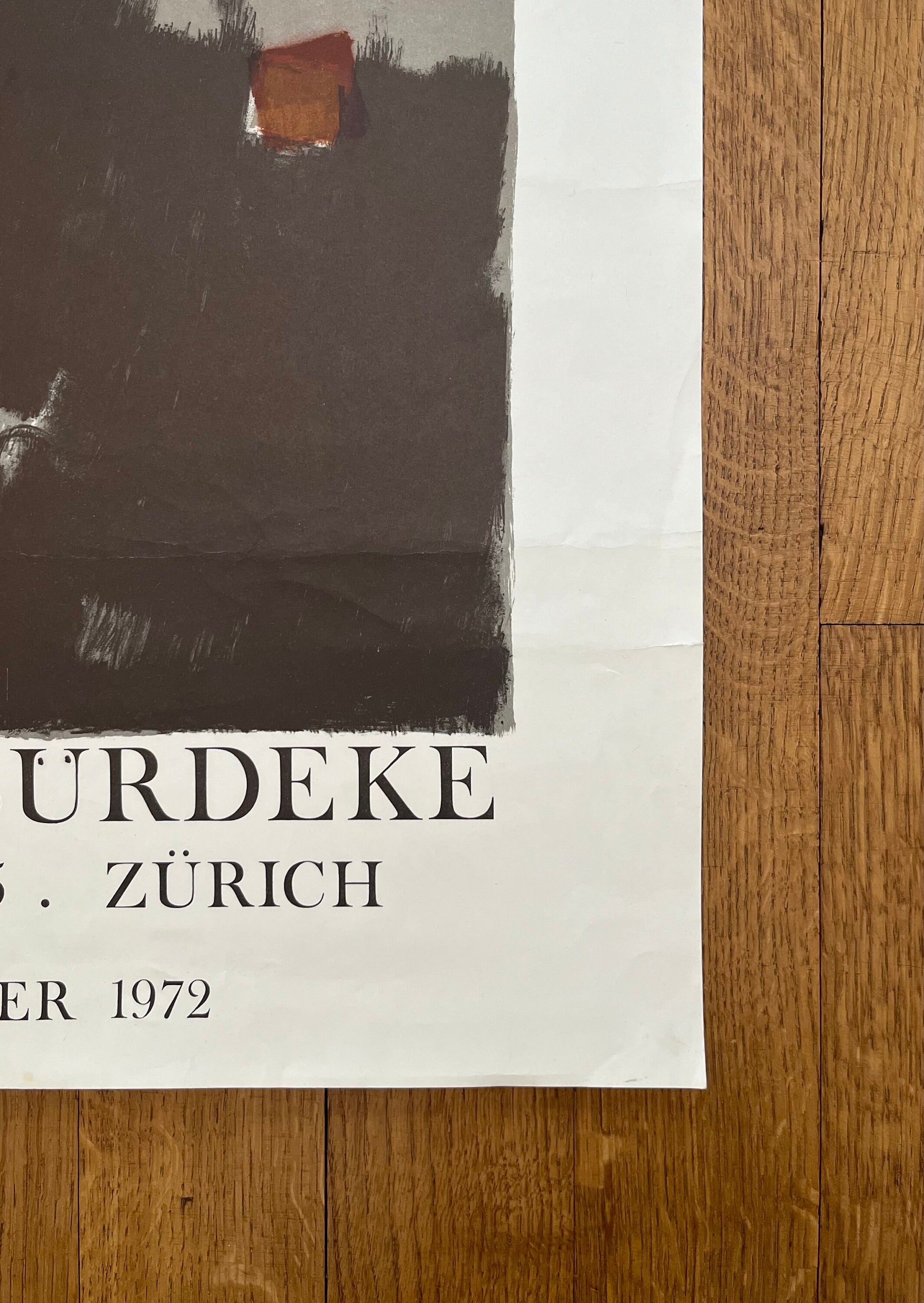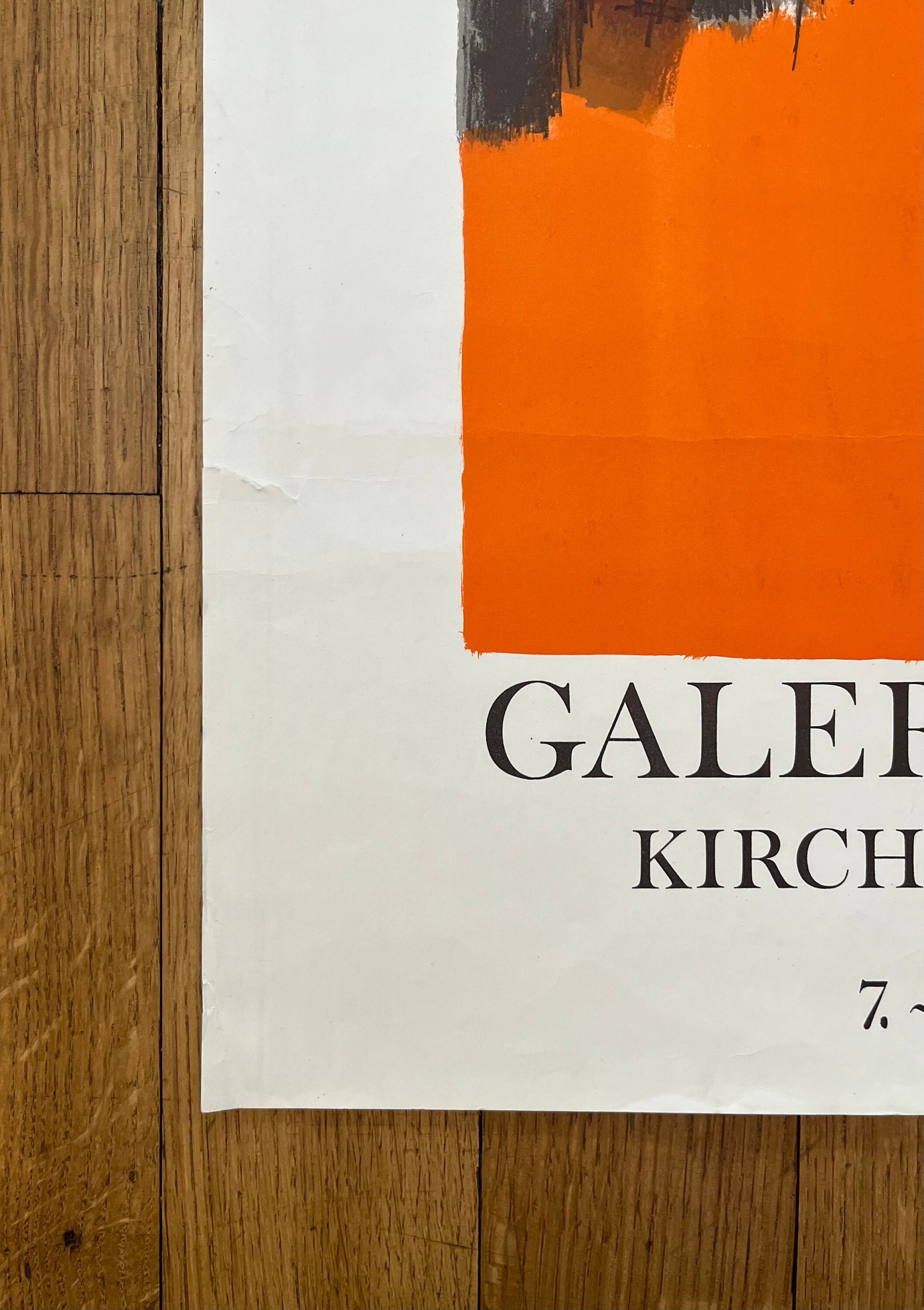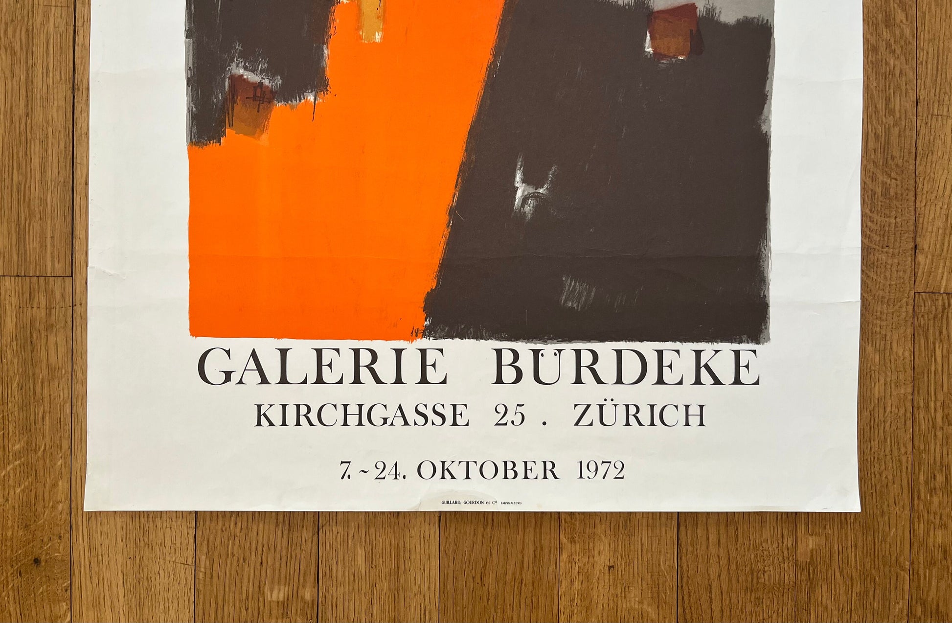 This is a beautiful silkscreen-lithography art poster by Stanislas Lépine featuring an abstract orange artwork and advertising an exhibition at the Galerie Burdeke in Zurich in 1972.